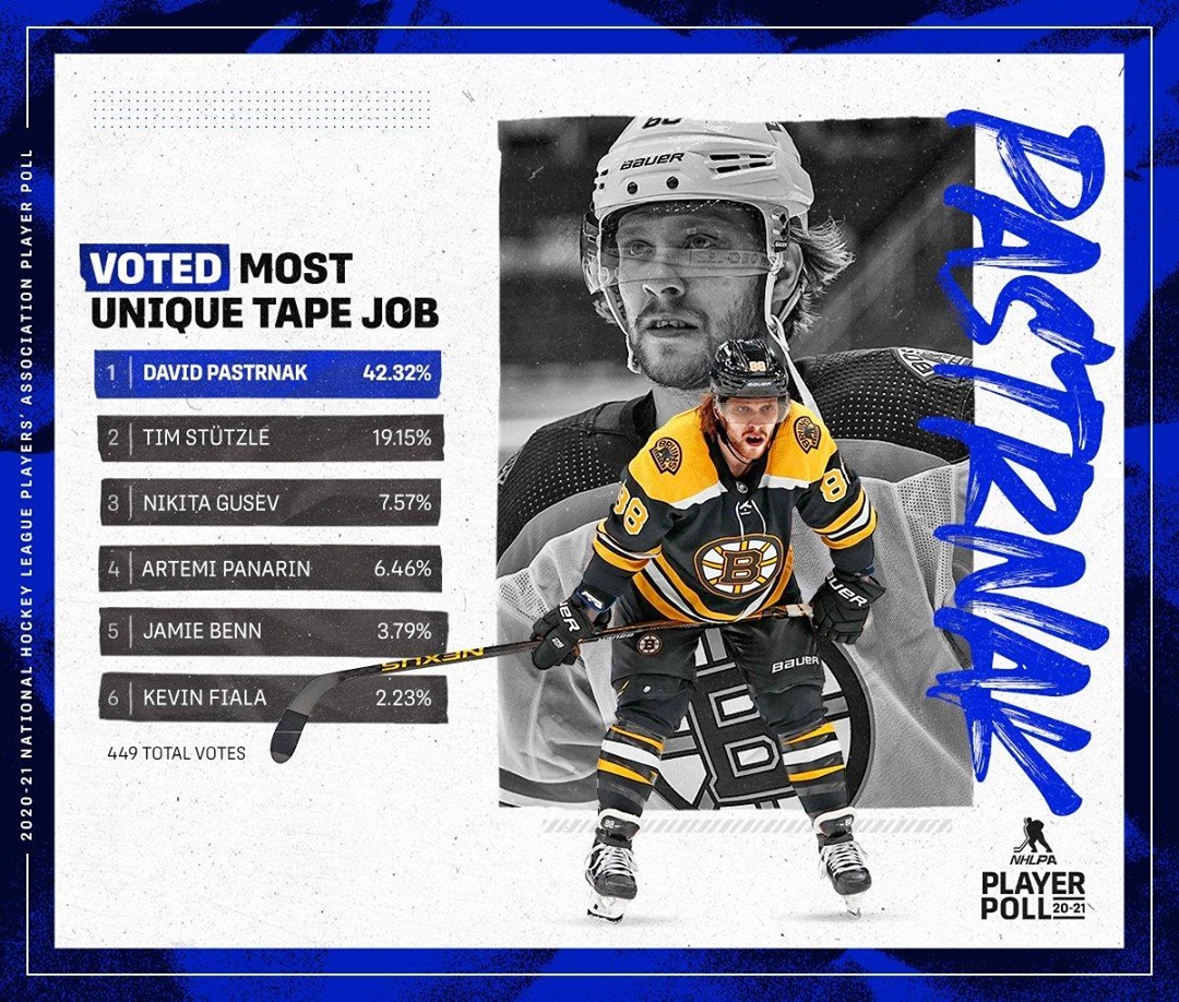 Ce n’est pas bizarre si ça marche… @davidpastrnak a été élu pour avoir le job de bande le plus unique dans le #NHLPAPlayerPoll. (Via @nhlpa)