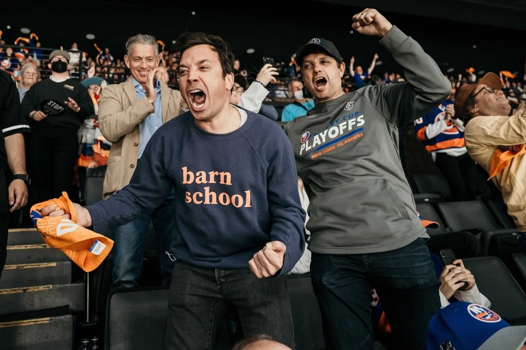 L’île a eu quelques grands noms qui ont encouragé les @NYIslanders hier soir pour le troisième match ! #StanleyCup – @jimmyfallon – @nyjets – @ralph_macchio – @rachaelkirkconnell et @mattjames919 de @bachelorabc.