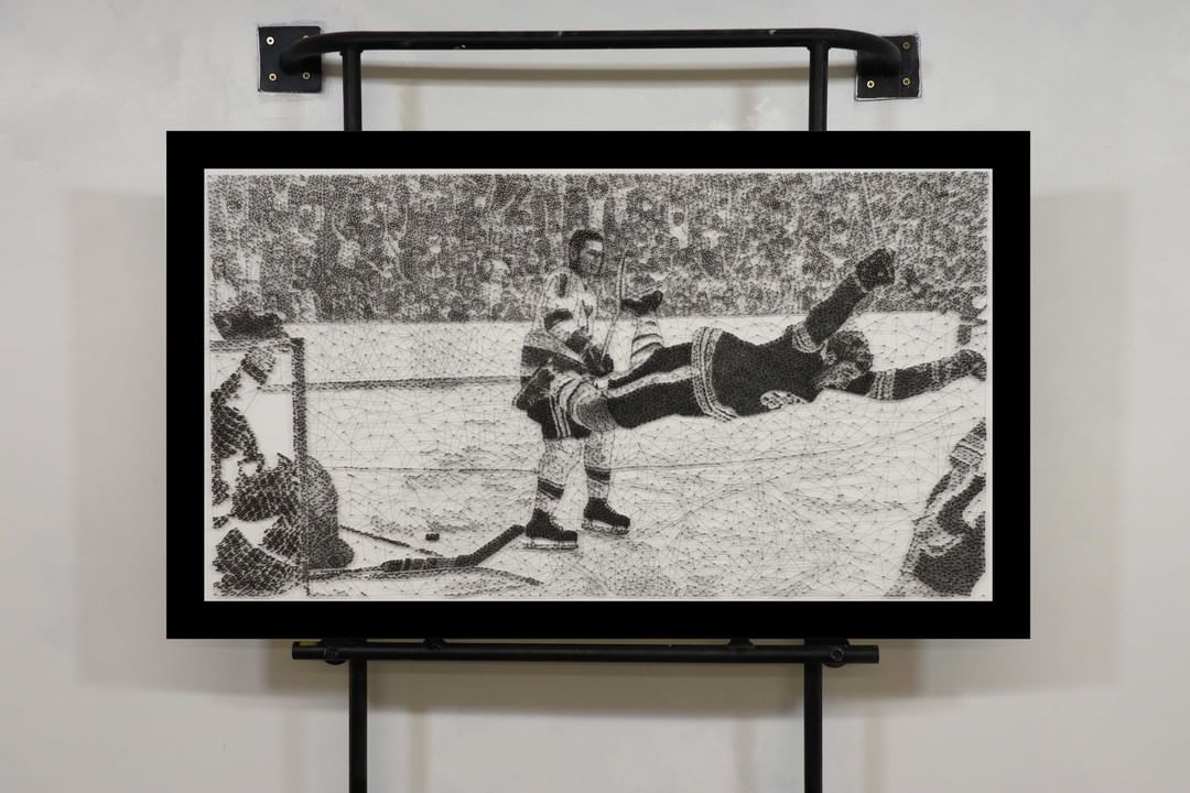16 212 clous. 200+ heures. Le but inoubliable de Bobby Orr lors de la finale de la #StanleyCup n’a jamais ressemblé à ça. (🎥 @thestringartguy)