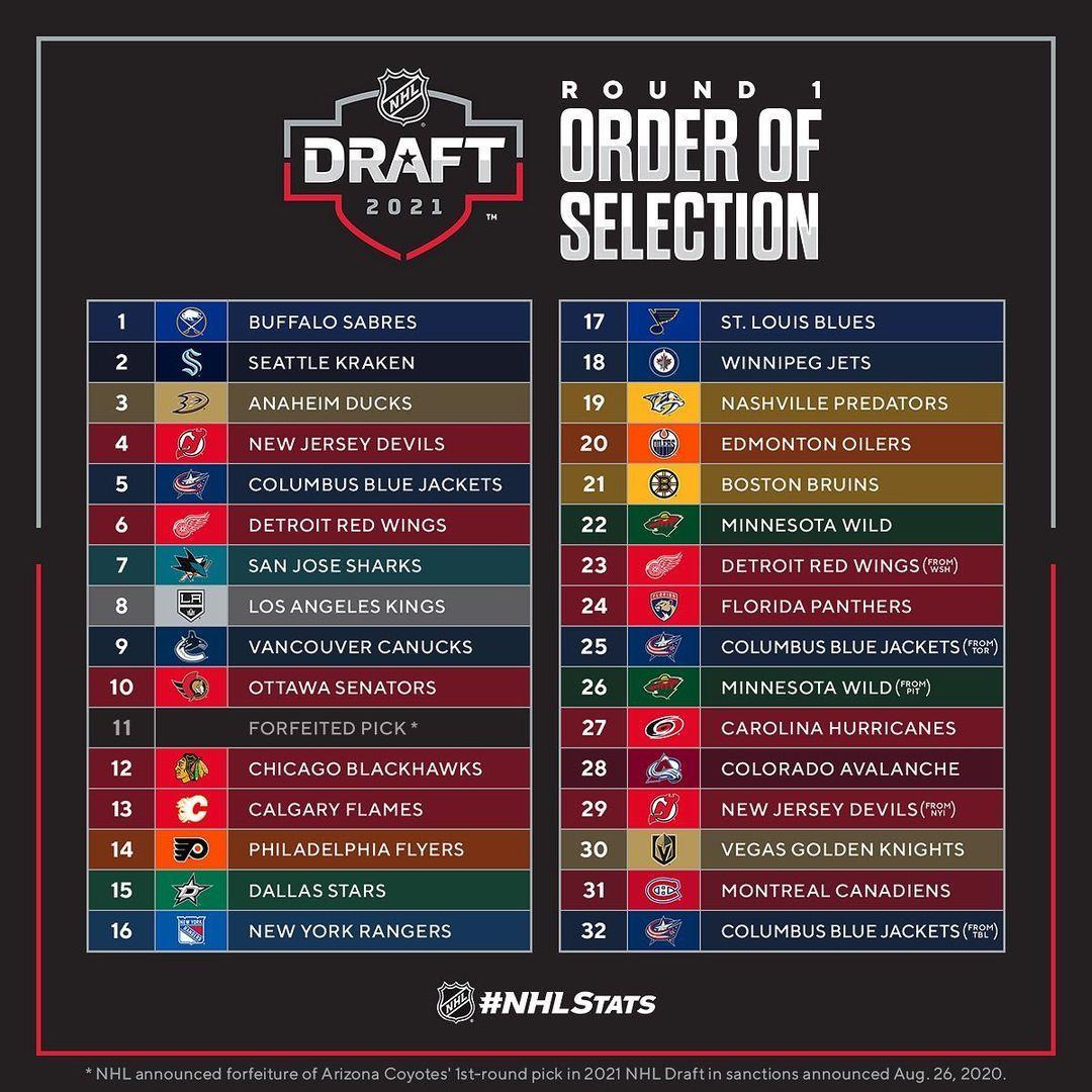 Voici comment se déroulera le premier tour demain❗ Ne manquez pas le #NHLDraft 2021 le 23 juillet à 20h HE sur ESPN2 et @sportsnet. (via @pr_nhl)