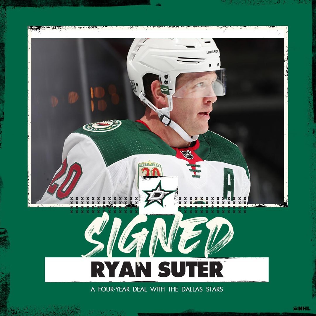 Ryan Suter part pour le Texas ! Il signe un contrat de quatre ans avec les @dallasstars. #AgenceLibreLNH HockeyHockey sur glaceHockeySurGlaceIce HockeyIceHockeyLA LNHLALNHLigue nationale de hockeyLigueNationaleDeHockeyLNHNational Hockey LeagueNationalHockeyLeagueNHLNHLFreeAgency