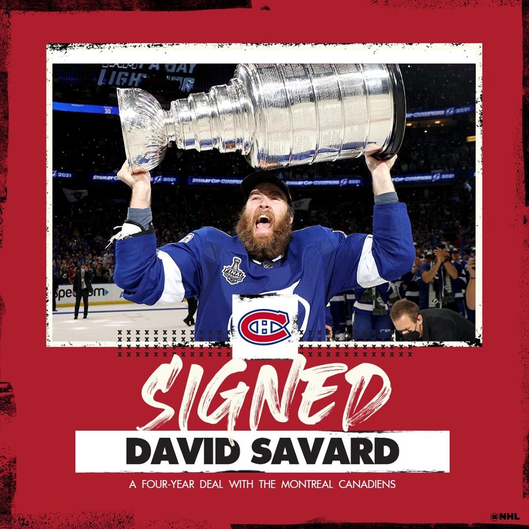 Le champion de la #StanleyCup et natif de Saint-Hyacinthe, David Savard, signe une entente de quatre ans avec le @canadiensmtl. #AgenceLibreLNH