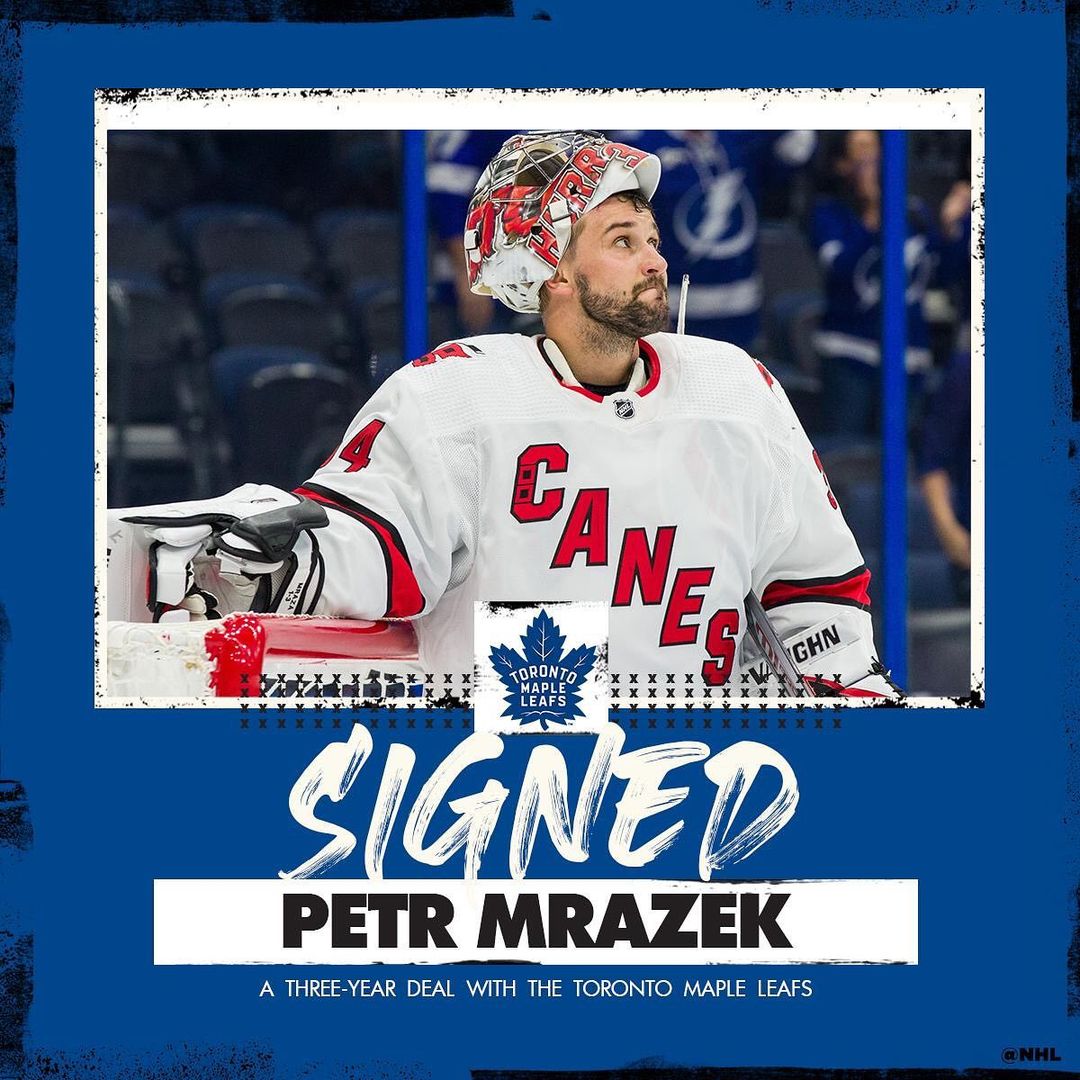 Les @mapleleafs ont leur gardien de but! Petr Mrazek (@pmraza34) signe un contrat de trois ans. #AgenceLibreLNH HockeyHockey sur glaceHockeySurGlaceIce HockeyIceHockeyLA LNHLALNHLigue nationale de hockeyLigueNationaleDeHockeyLNHNational Hockey LeagueNationalHockeyLeagueNHLNHLFreeAgency