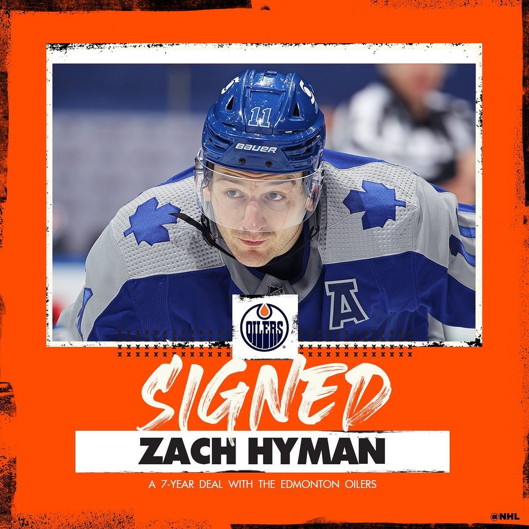 LNH: @zachhyman à destination d’Edmonton a conclu un accord de 7 ans avec les @edmontonoilers…