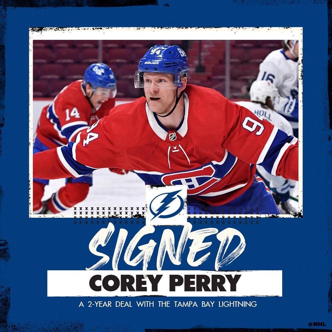 Après l’avoir affronté au cours des deux dernières années lors de la finale de la #StanleyCup, les @tblightning ont recruté l’attaquant vétéran Corey Perry. #AgenceLibreLNH