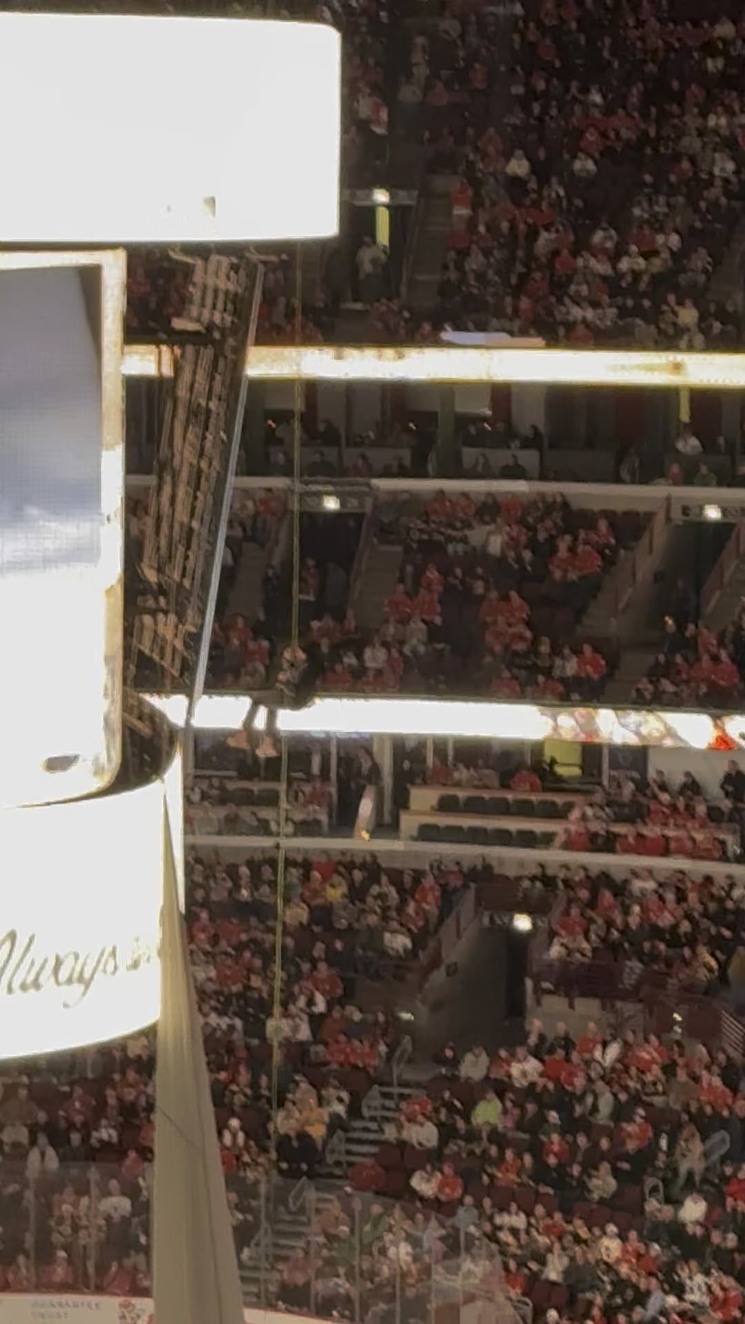 Ok add scoreboard rappel guy to my list of fallback careers. Right after skate jousting Vegas opener guy.Â