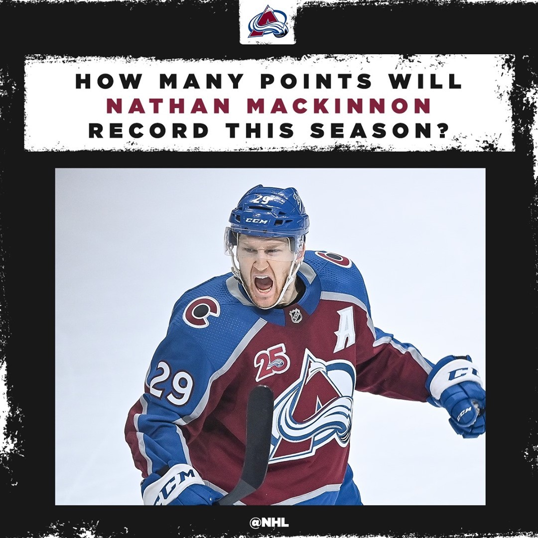 Nathan MacKinnon (@mackinnon29) enregistrera __ points au cours de la saison 2021-22. ☑️ HockeyHockey sur glaceHockeySurGlaceIce HockeyIceHockeyLA LNHLALNHLigue nationale de hockeyLigueNationaleDeHockeyLNHNational Hockey LeagueNationalHockeyLeagueNHL