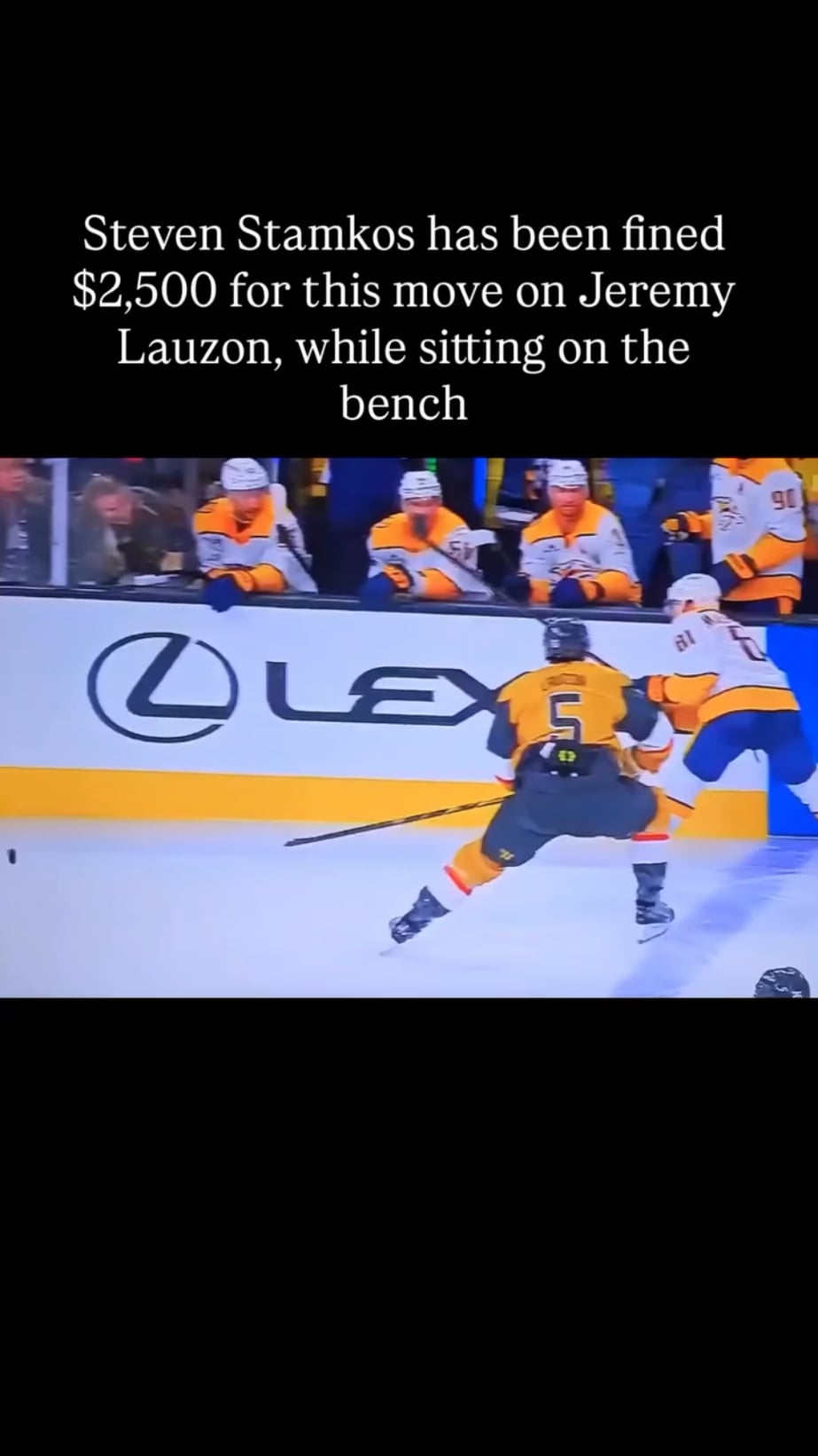 Je l’ai vu mentionné mais pas de vidéo, c’est le bâton de Stamkos sur Lauzon depuis le banc, amende de 2500$