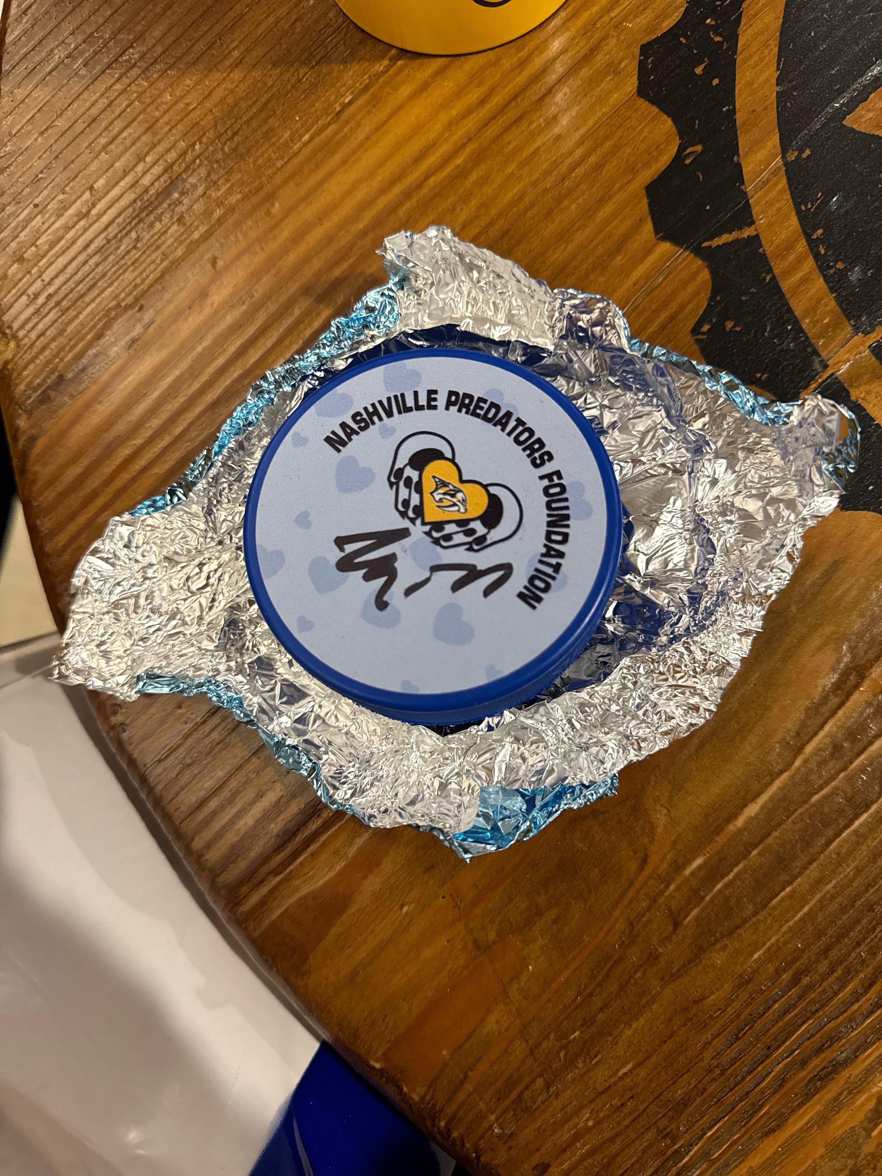 Salut! J’ai acheté une rondelle mystère lors du match de ce soir, mais elle n’était pas étiquetée. Quelqu’un sait à qui appartient cette signature ?