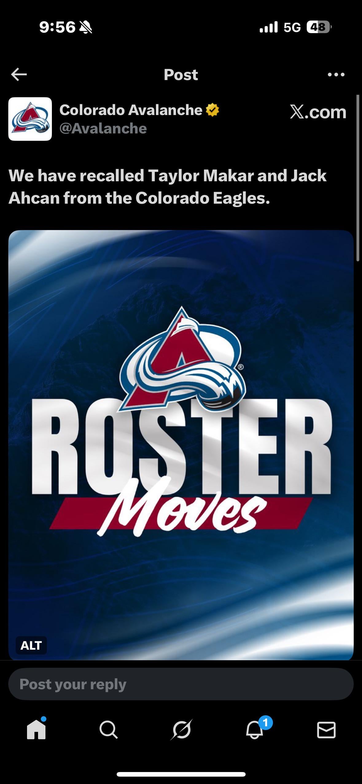 [Avalanche] Nous avons rappelé Taylor Makar et Jack Achan des Eagles du Colorado.