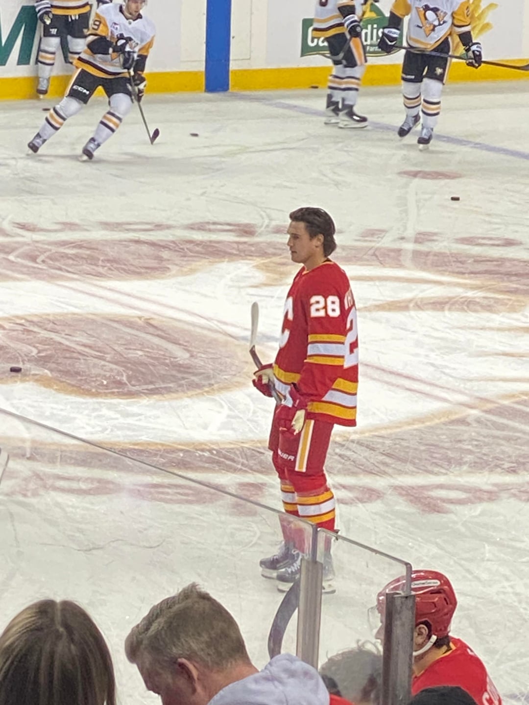 J’ai emmené mon fils regarder ses Pens jouer à Calgary. Je dois voir Whitecloud jouer. Plus de 22 minutes de temps de glace et une passe décisive. Ravi de le voir, mais pas dans ce maillot.