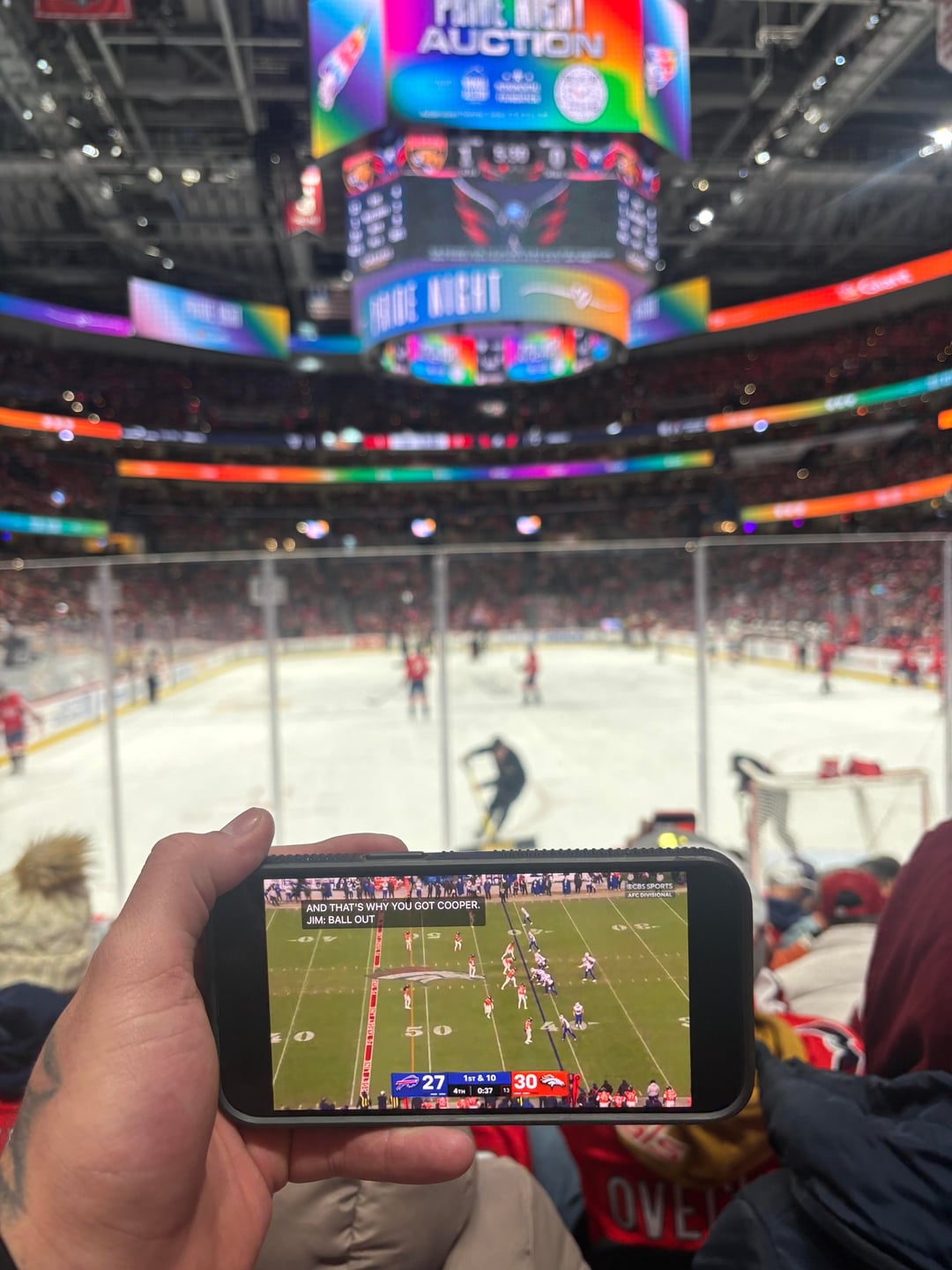 You traveled to the hockey game in DC to watch a football game on TV? 🤔 Ok…