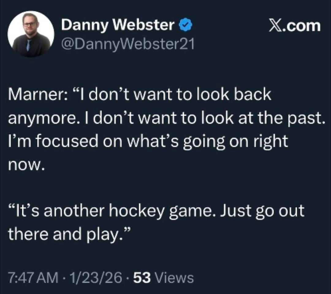 I sincerely hope that cooler heads prevail and Marner’s return to Toronto is otherwise an uneventful nothing sandwich, but I really doubt it will be. I think the best we can hope for is that there’s no incidents around it. I’ve never had a bad interaction with a Leafs fan, but I know it’s a different ball game when you get behind the gates of the Minas Maple.