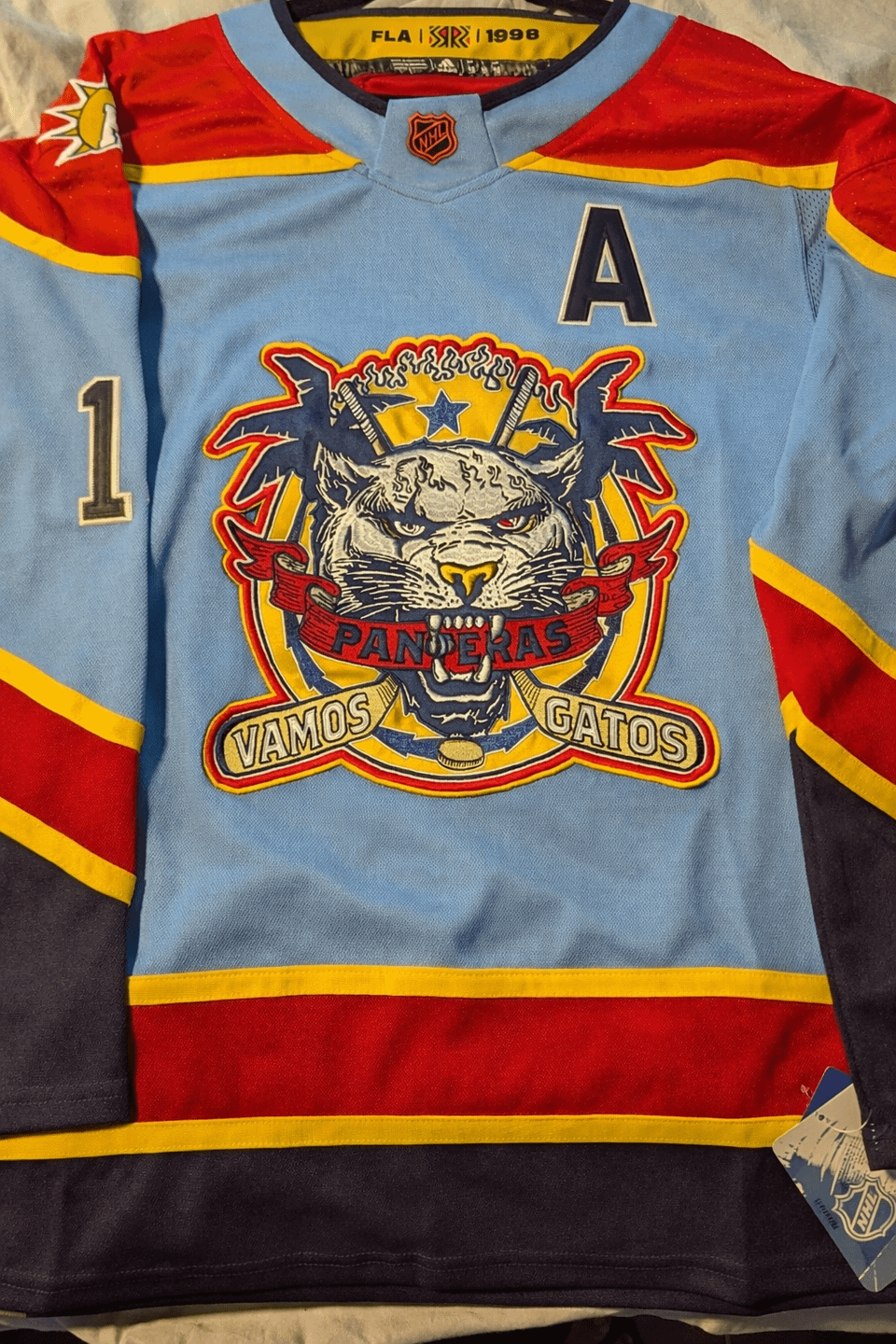J’ai acheté ce sweat-shirt Vamos Gatos à l’arène (photo 1). J’adore le logo, j’aime pas le sweat-shirt. #1 le logo est au dos, #2 je n’aime pas l’emplacement ni la taille du VAMOS GATOS sur le devant, #3 j’ai perdu du poids et il est énorme sur moi. Donc ce que je pense, c’est que je vais commander un maillot sans logo sur le devant et que je ferai ensuite coudre le logo VG sur le devant. Oui, ce sera un faux maillot. Je ne détruirais pas un vrai et vous ne pouvez pas en commander un vrai sans logo de toute façon. J’ai fait quelques maquettes avec le rétro inversé (photo 2), le classique d’hiver (photo 3) et une option personnalisée (photo 4). Je ne pense pas que je vais opter pour l’option personnalisée ou quoi que ce soit avec des rayures. Il a l’air occupé avec le logo IMO. Qu’en penses-tu ? Quelqu’un a fait quelque chose de similaire ?