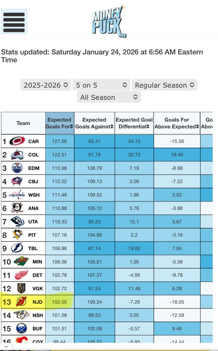 You post as though 13th in xG is good enough. It is not, especially given that the 25/26 Devils are **28th (5th WORST) in xGA.**
