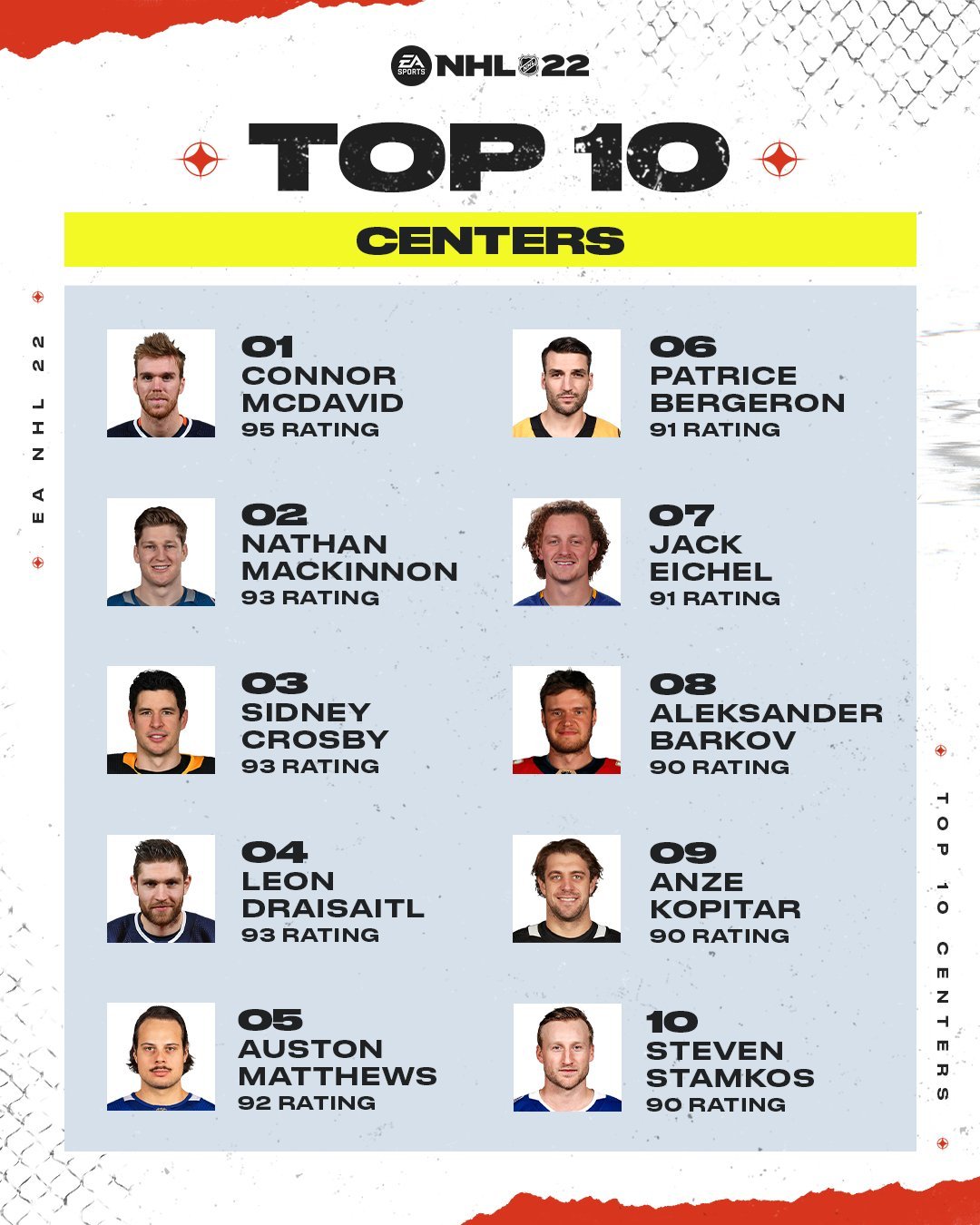 Présentation des 10 meilleurs centres de la #NHL22 ! Les pensées? 🗣 Voir le Top 50 complet @easportsnhl HockeyHockey sur glaceHockeySurGlaceIce HockeyIceHockeyLA LNHLALNHLigue nationale de hockeyLigueNationaleDeHockeyLNHNational Hockey LeagueNationalHockeyLeagueNHLNHL22