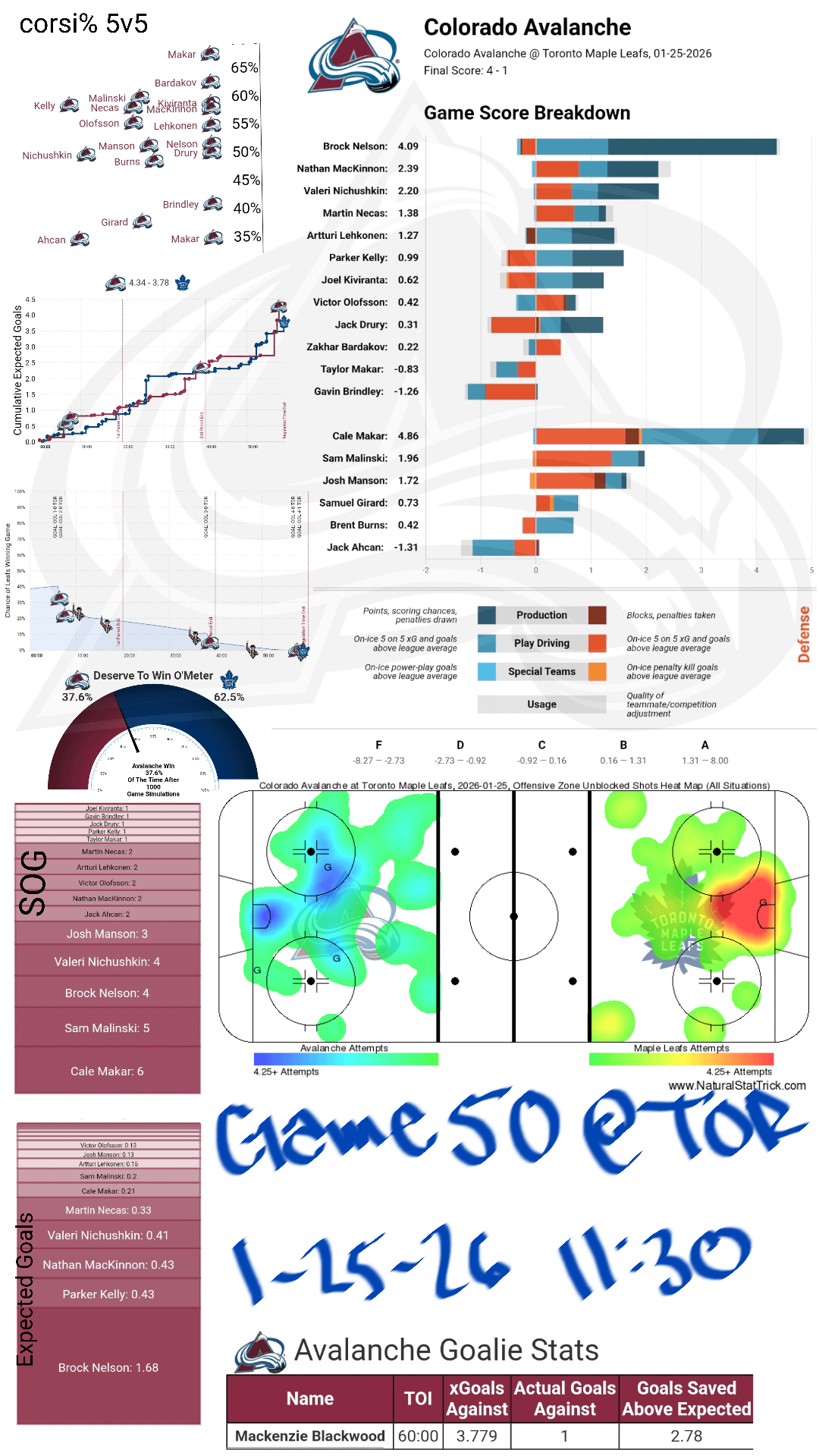 Was rewatching the highlights and just have to smile at the Josh Manson dangle. That guy!! He is having a year and I love it. Too bad he didn’t score there.