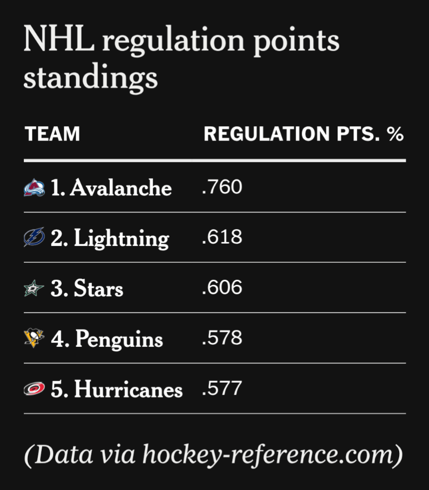When are these from? Or are they calculated weirdly? Shouldn’t the Pens be at .611 and Avs at .842, etc?