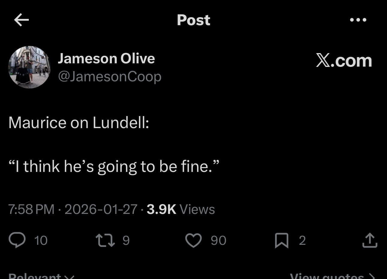 I mean if he says that he’s going to be fine then I’ll take him at his word. At worst he has a concussion.