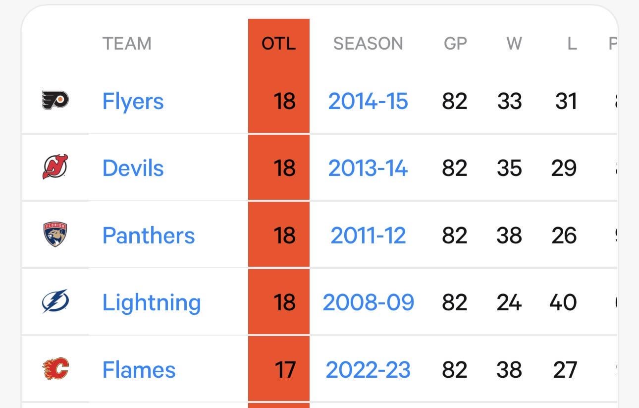 Le record du plus grand nombre d’OTL au cours d’une saison est de 18. VGK compte déjà 14 OTL, avec 29 matchs restants.
