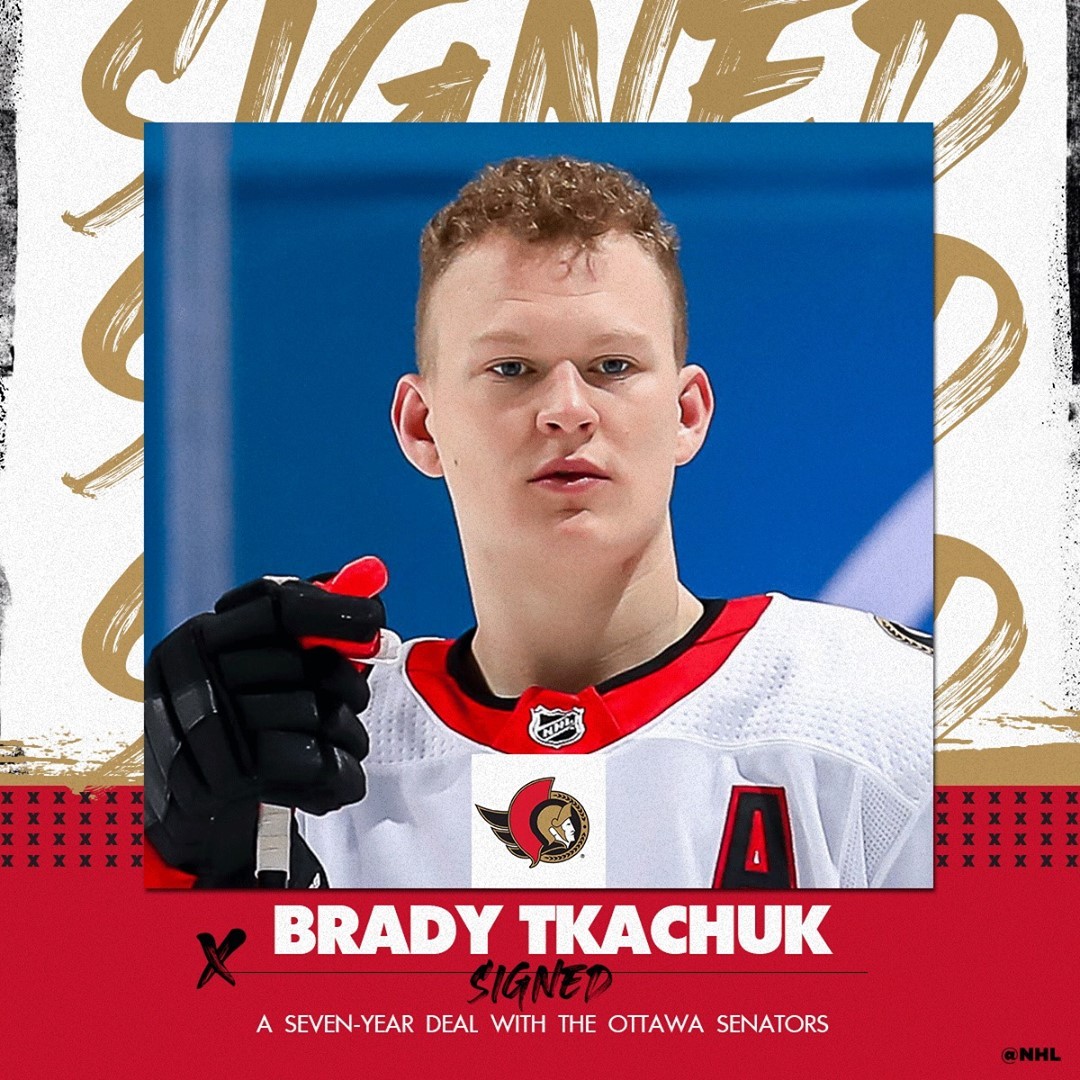 Grosse affaire pour @bradytkachuk ! Les @Senators re-signent l’attaquant américain pour un contrat de sept ans. ✒️ #NHLFaceOff
