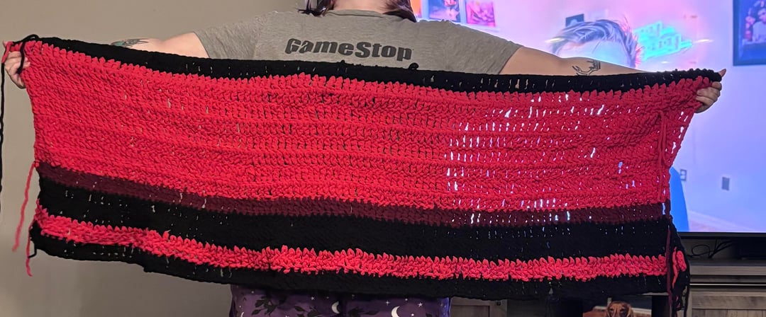 Je travaille sur une couverture des diables avec une rangée indiquant le déroulement de chaque match (donc comme une couleur pour la victoire, la défaite, la victoire en OT, la perte en OT, etc.), et je voulais publier mes progrès mdr. Il y a un long chemin à parcourir mais 🤞