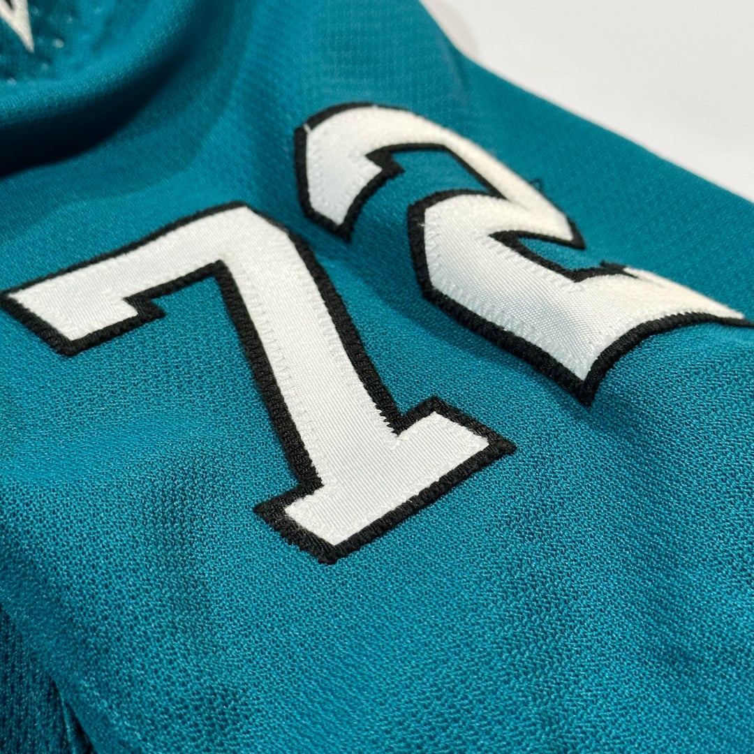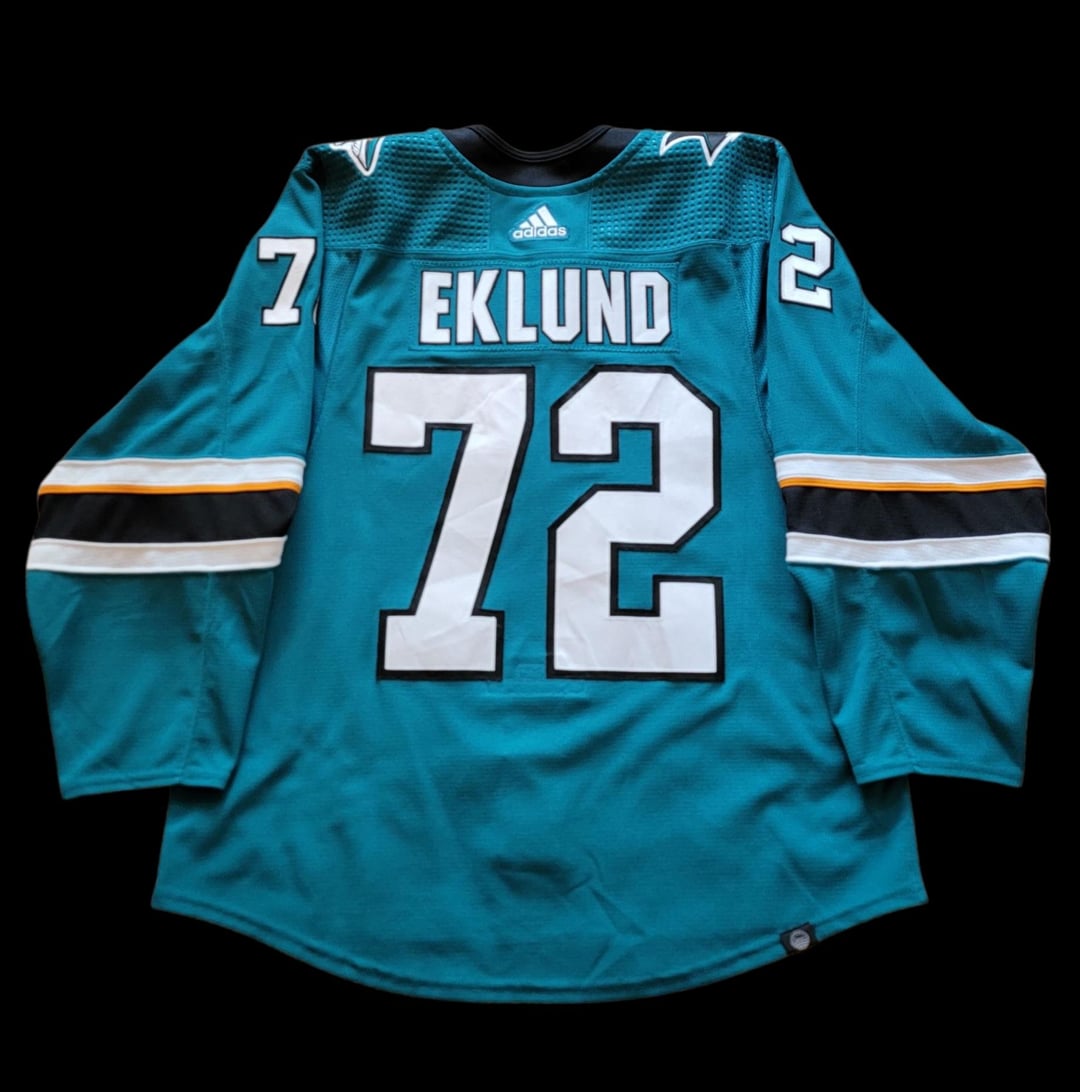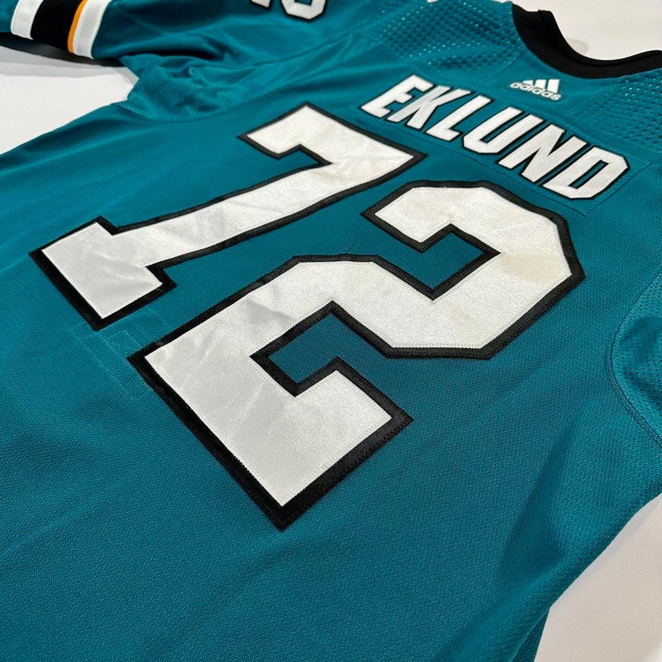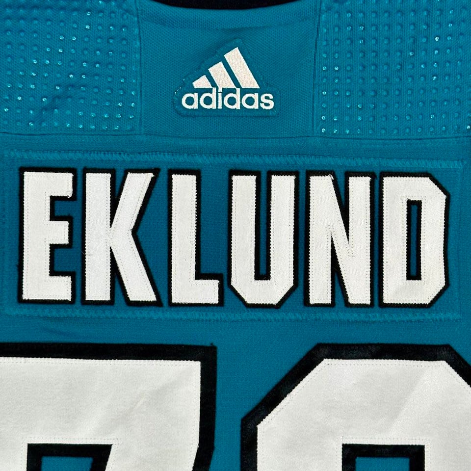 Je viens de récupérer mon premier maillot porté par un joueur à la San Jose Game Worn Hockey Jersey Expo de cette année – le maillot Rookie Faceoff de William Eklund, photo assortie à son vainqueur du match OT contre les Ducks le 16/09/22. Je suis super content de l’ajouter à la collection et excité que ce soit le début de mon parcours de joueur.