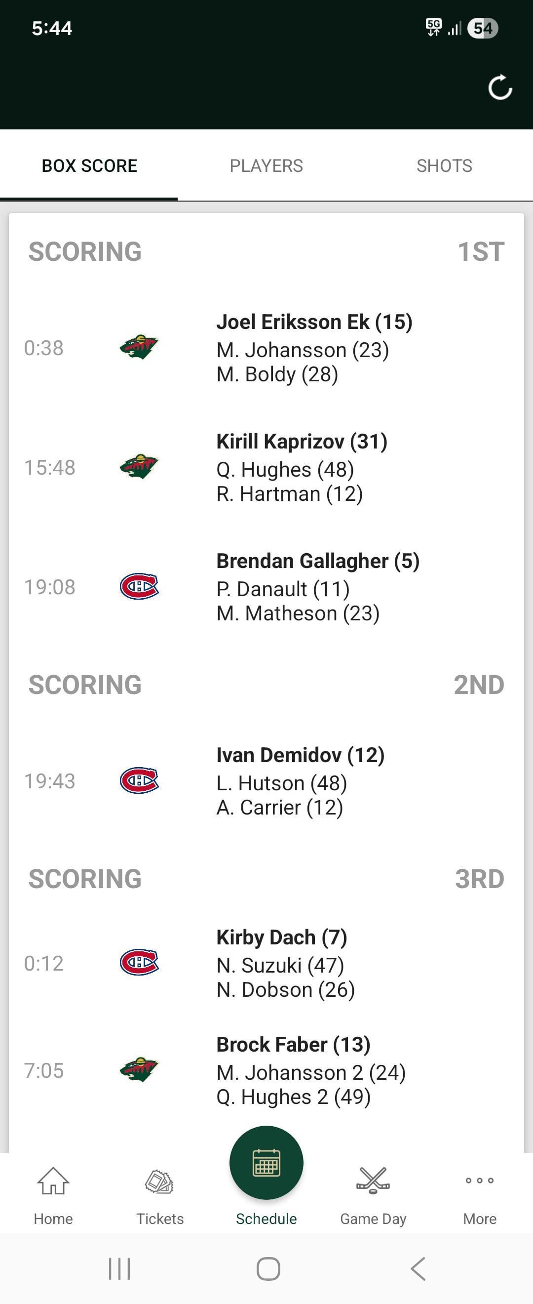 Goal and assist numbers. So the top one was Eriksson Ek’s 15th goal of the year and Johansson’s 23rd assist.