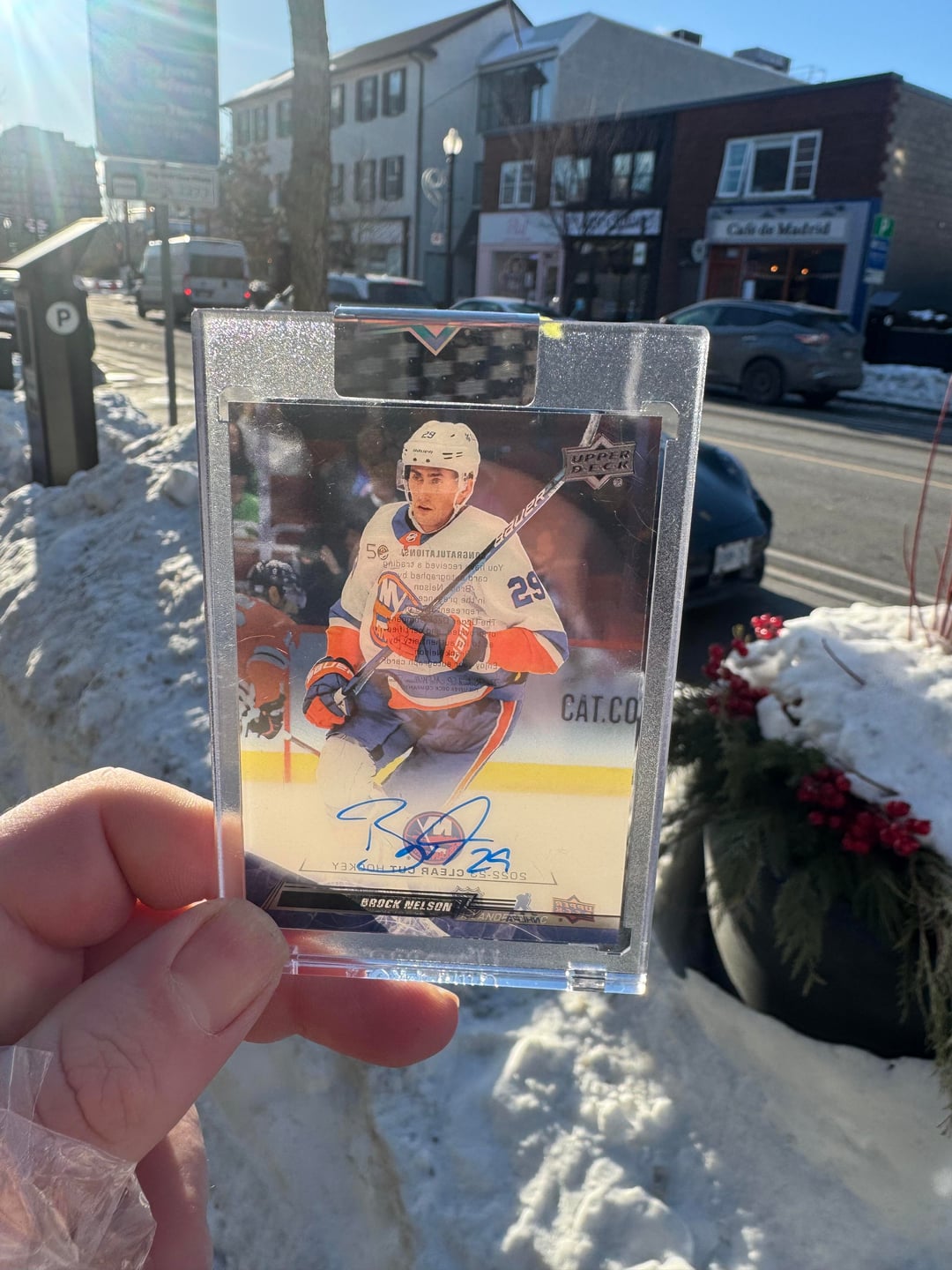 J’étais au match à Toronto et en tant que fan d’Avalanche, j’ai toujours le cœur brisé de ne pas pouvoir acheter de souvenirs de l’Avalanche lors du match. J’ai donc pris les choses en main et j’ai commandé une carte dédicacée à Brock en l’honneur de son tour du chapeau lors de ce match.