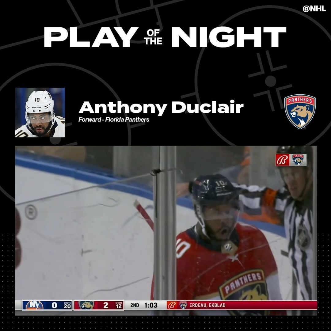 -Le bel effort de @brandontanev 😤 -Anthony Duclair (@aduclair10) met tout en Å“uvre 👀 -Le super gant d’Anton Forsberg 🛑 -Le joli décompte d’Aleksander Barkov (@barkovsasha) Et le jeu de la nuit va à …? #NHLFaceOff