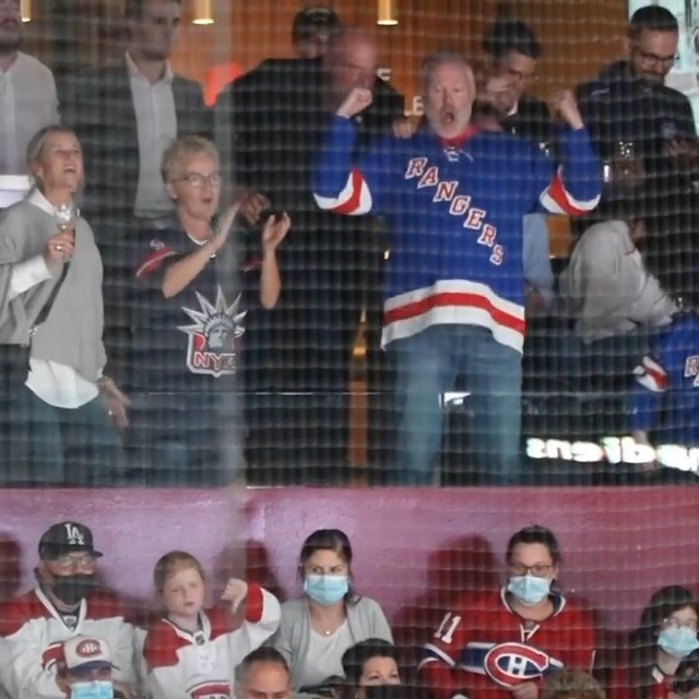 La famille d’Alexis Lafrenière (@alexlaff11) a pu le voir jouer dans la LNH pour la première fois au cours de la fin de semaine. Leur réaction à son GWG était inestimable. 💙 #NHLFaceOff (🎥 @nyrangers)