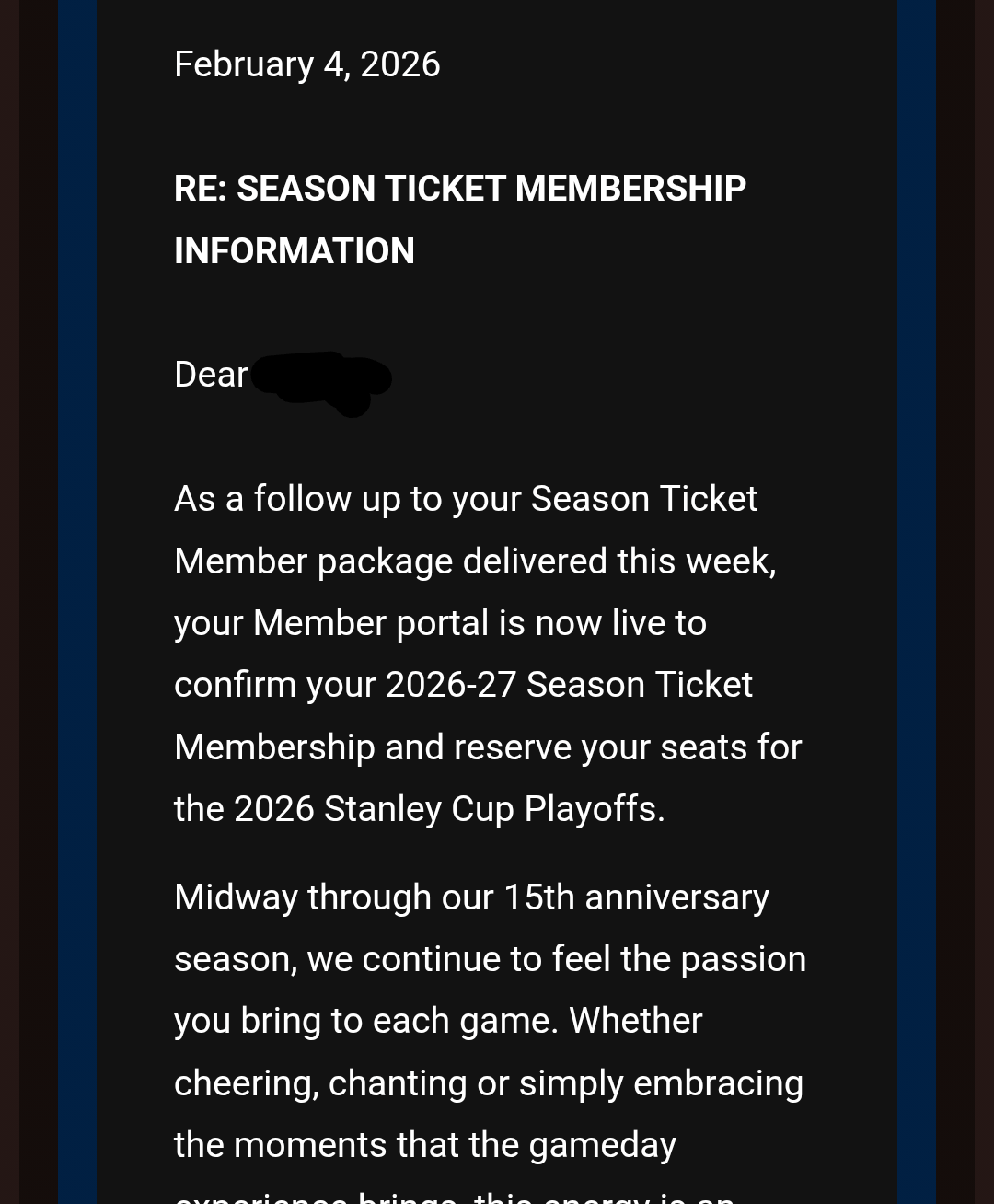 ZealousShot 4 semaines ago Just standard protocol. In the off-chance they make the playoffs, it would be chaos to get that organized with the STH. Just paperwork. Nothing more. Click accept. Pay as we play. Pay nothing and that’s it.