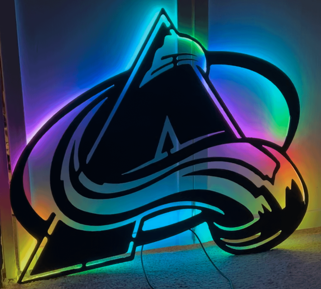 Ce petit projet de bricolage s’est avéré meilleur que ce à quoi je m’attendais, c’était comme un partage. Pas mal pour une enseigne en acier à 80 $ de 607SportsDecor (Etsy) et des bandes lumineuses bon marché ! Des possibilités infinies avec des couleurs (mobiles) également sur le pourtour du panneau