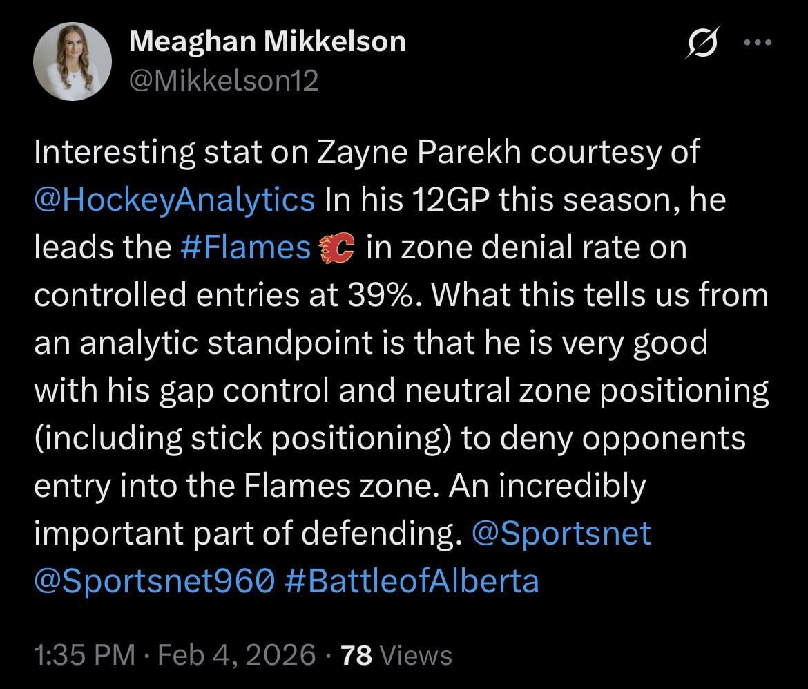 There was a super noticeable play from the Toronto game with about 6 mins left in the third. His gap control was elite, he jumped up to break up a rush and Huberdeau was in the way. It was like huby was playing deeper to try and cover or give extra help to Parekh…. But he was in the way, super far out of position and screwed it up.