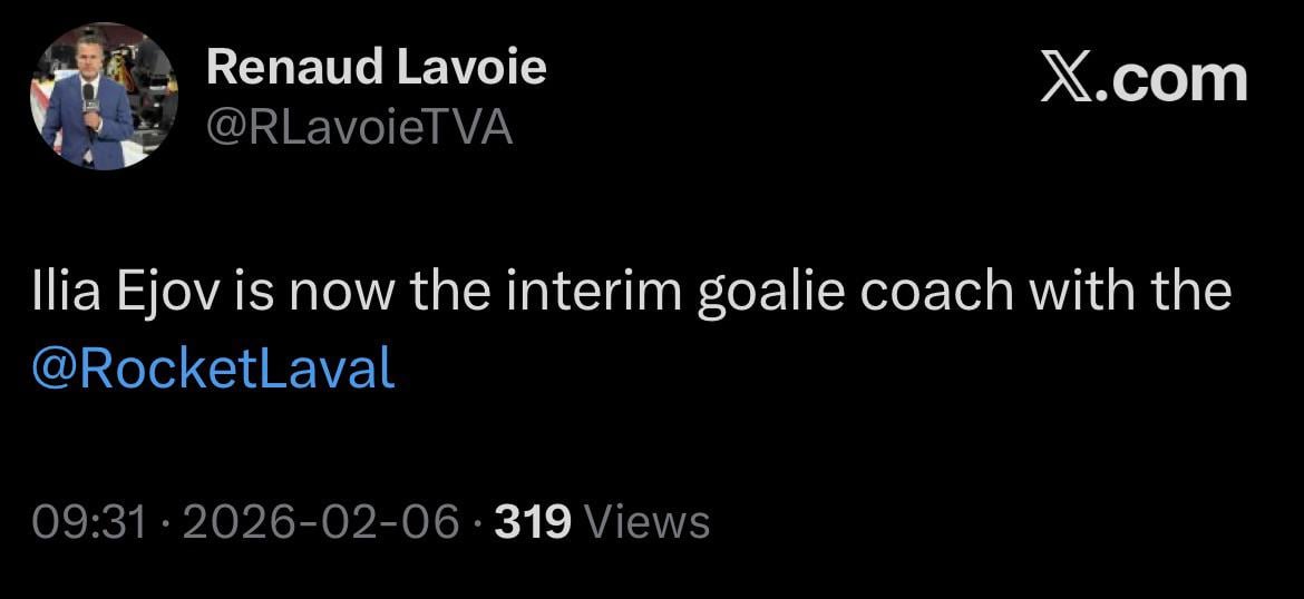 – [Laval Rocket Website.](https://www.rocketlaval.com/en/press-release/ilia-ejov-interim-goalie-coach/)
