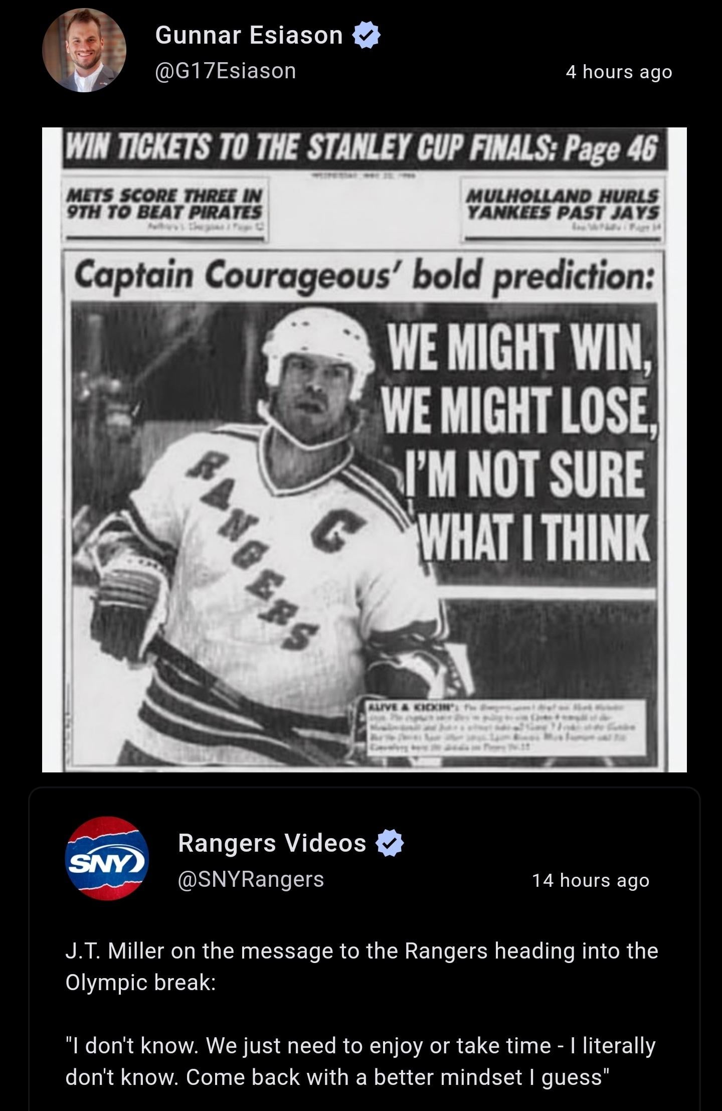 I’ll preface this by saying that I generally like Miller, but I don’t think he was the right guy for the job. He’s the opposite of a ‘politician’ and the captain in a major media market needs to be a politician to some extent- especially if the team stinks. You get a lot less of these questions on a playoff team, which is what I think they thought were gonna be when they named him, but obviously when the team has won like three games in the past ~40 days, they’re gonna grill you, and Miller just doesn’t have what it takes to give satisfactory answers when getting grilled like that.