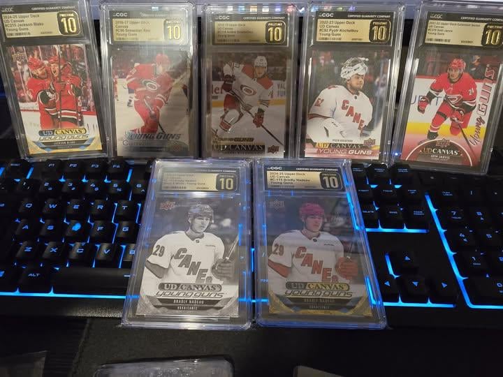 Je travaille lentement à rassembler une collection de cartes Canvas Young Guns dans un Pristine 10. J’ai tout récupéré brut.