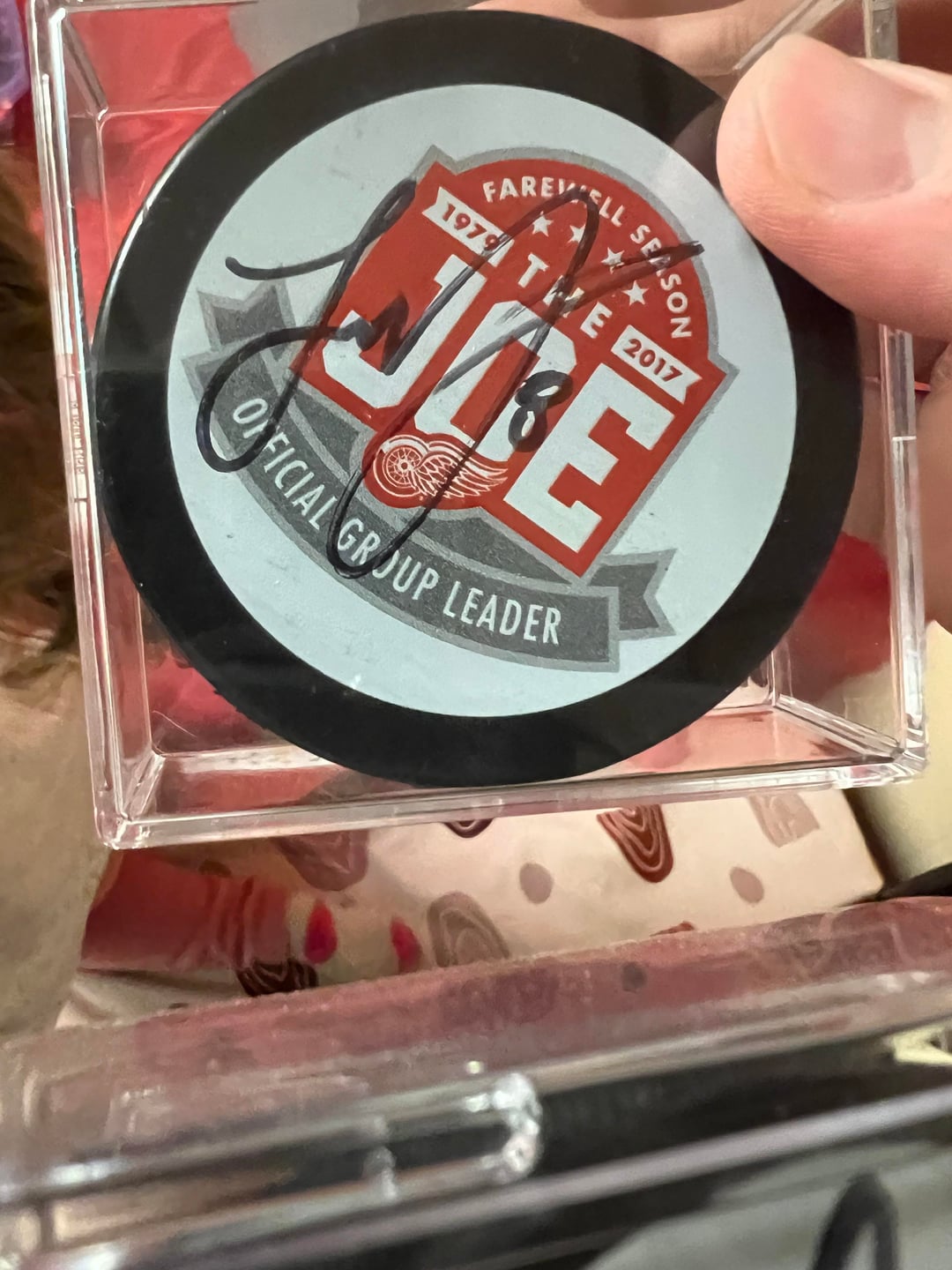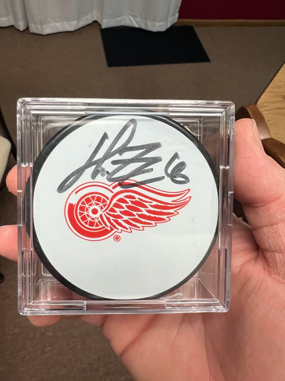 Looks like the puck with the solo Red Wings logo is Zetterberg, I should have searched harder before posting 🤦🏻♂️