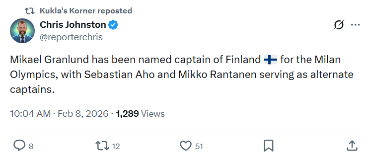 He is one of the all time greats for the NT, so with Barkov injured he was the obvious choice for captain.