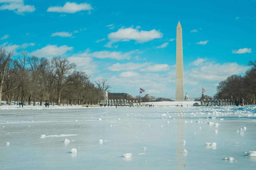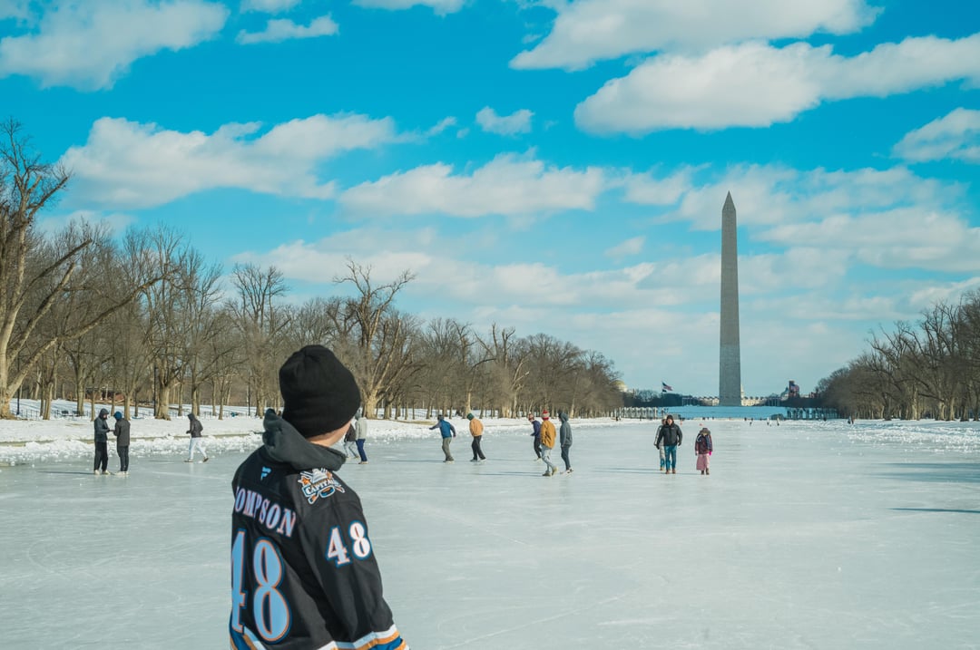 My dad told me that back in the day (the 1980s) DC police would chase them off the reflecting pool because there was an ordinance that stated ice had to be so many inches thick for people to skate on it. The depth of the reflecting pool was less than that – so even though the whole thing was frozen, it still didn’t meet the criteria.