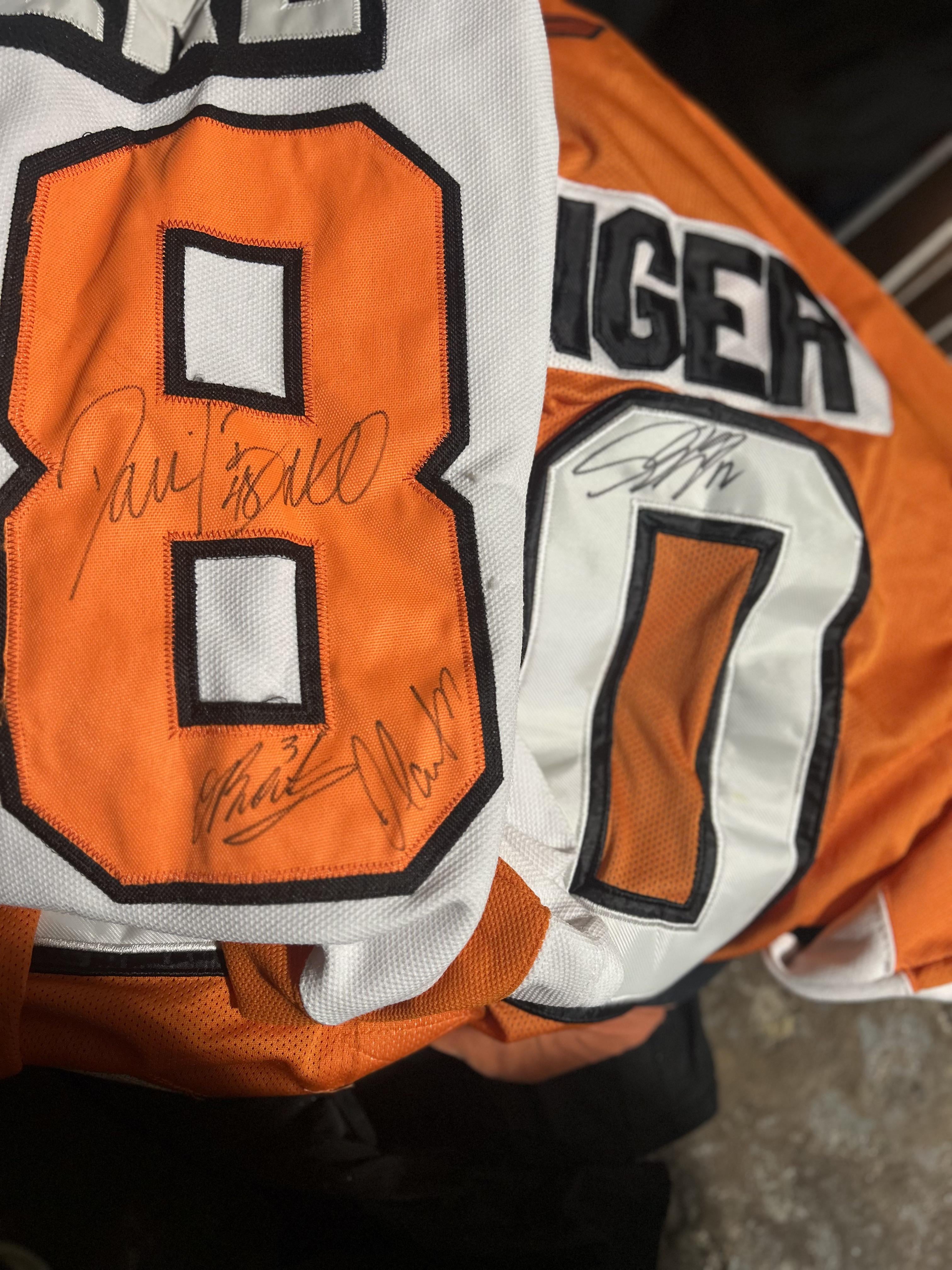 Left Jersey: (top)Briere, (left)Bartulis, (right)Jeff Carter