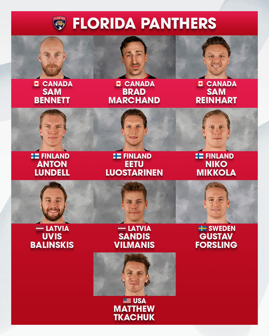 Holy shit. The entire panthers roster is suiting up for the Olympics. Jones and Barkov would have made it 12 players total.