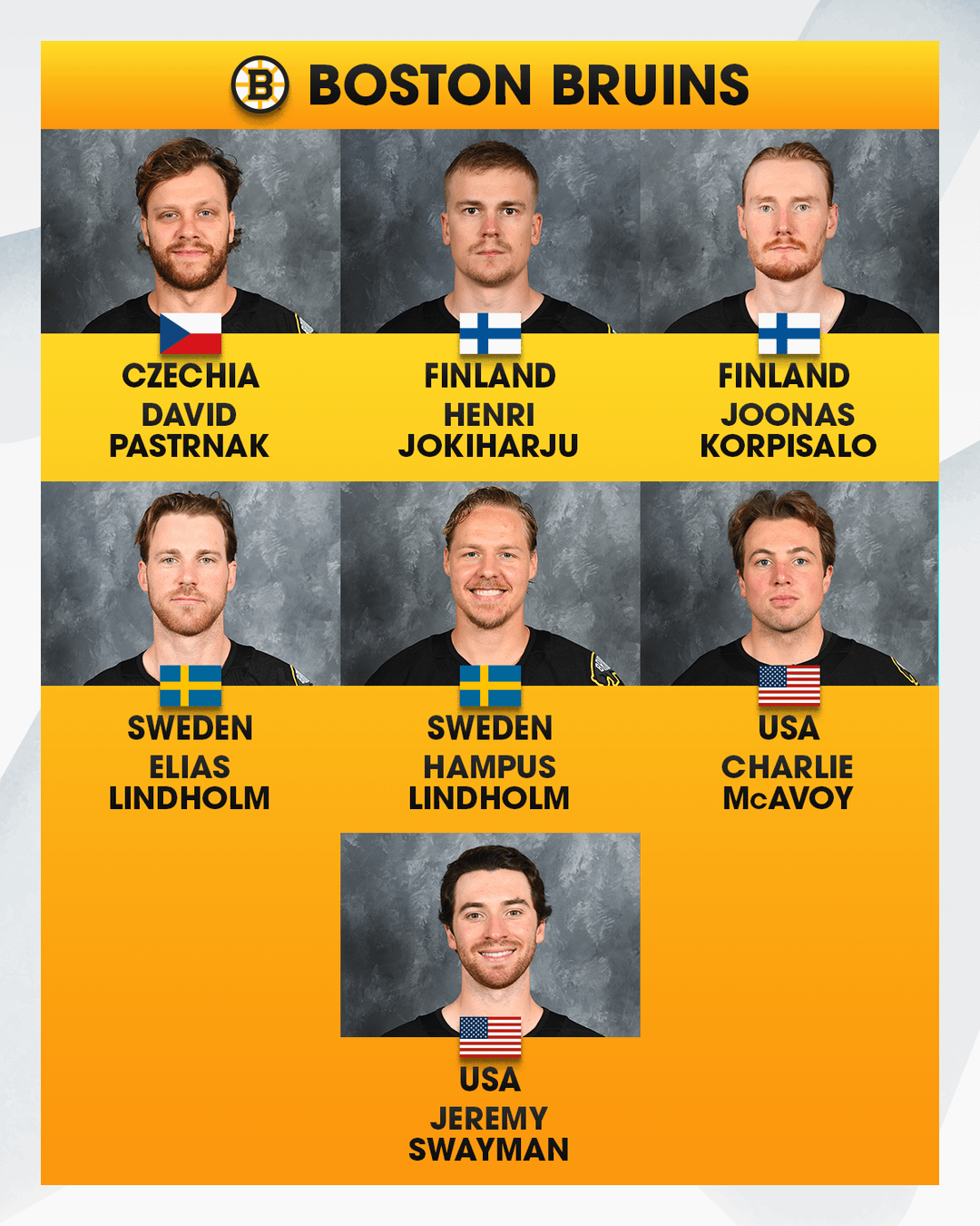 Bruins also have Locmelis on Latvia. He’s a prospect playing for the AHL club. Zacha was on Czechia but now injured and will miss.