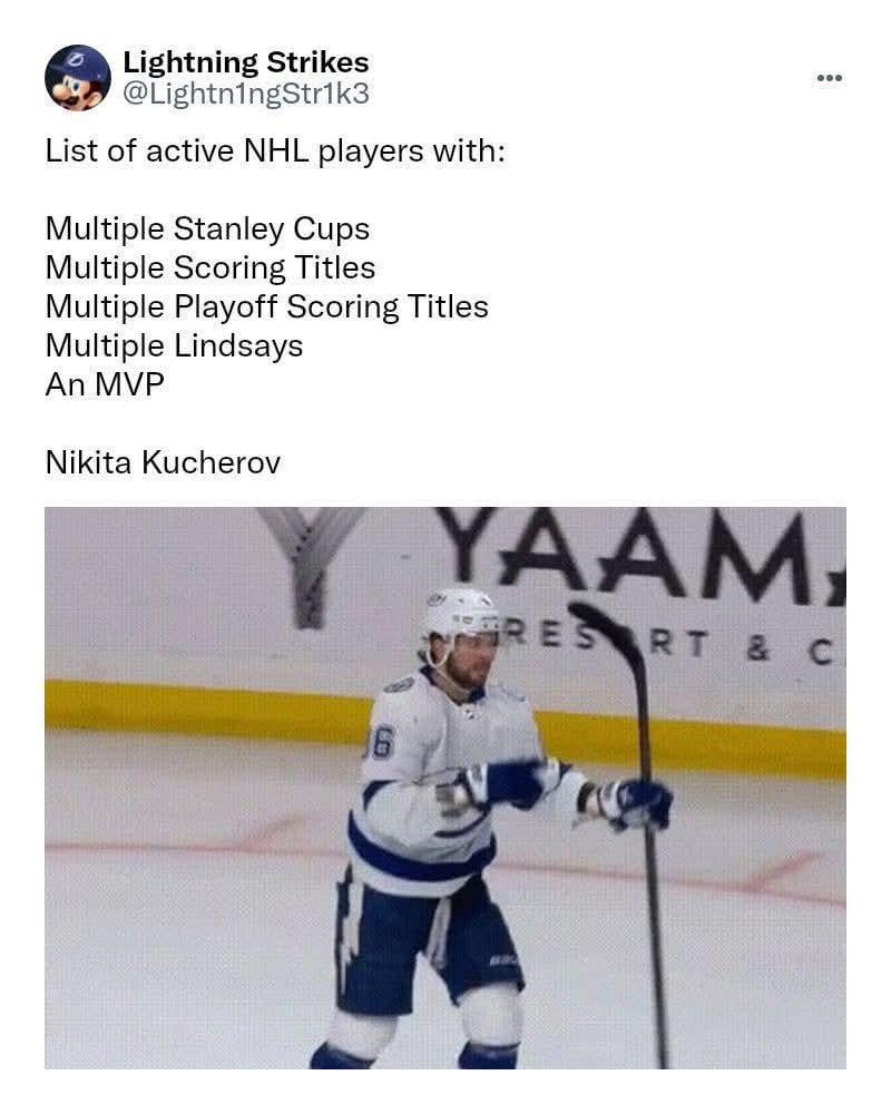 la légende disait "Meilleur joueur du monde. Le manque de respect dont Kucherov est victime est tout simplement injustifié."