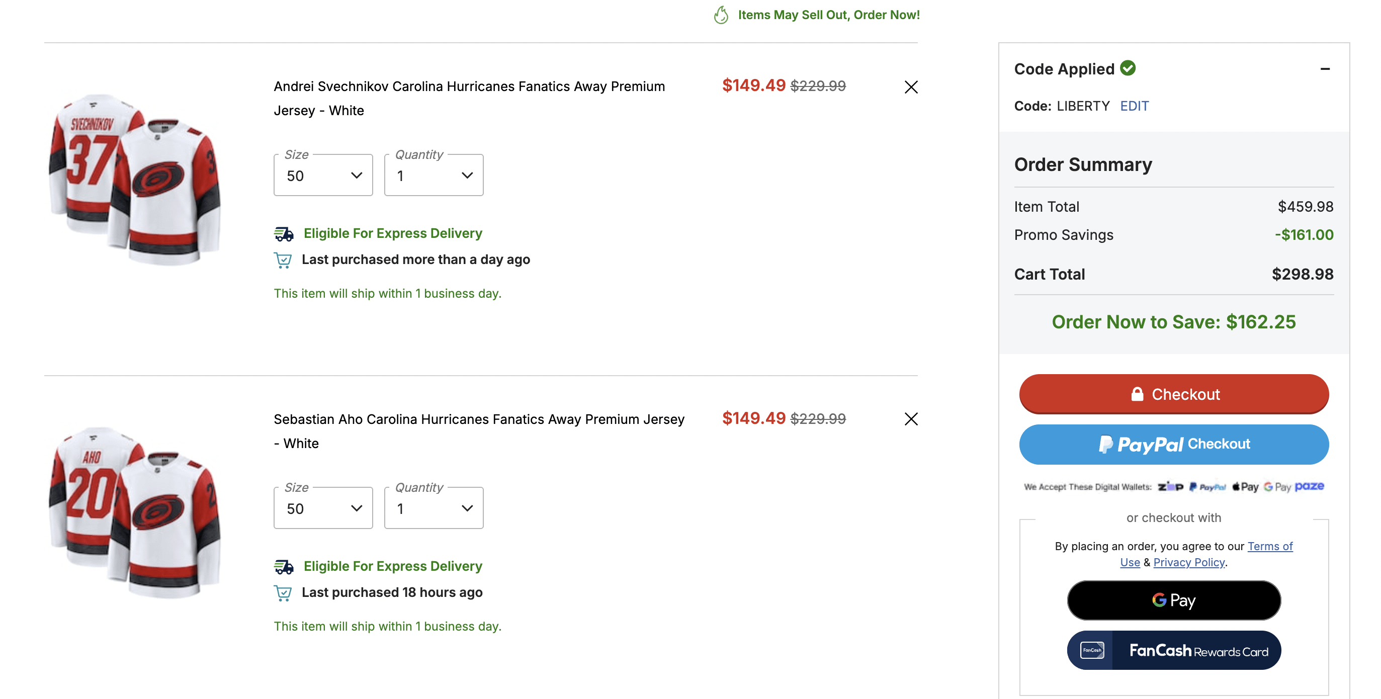 And if you have an Amex, there’s an offer for $20 off a $100 purchase from the NHL shop.