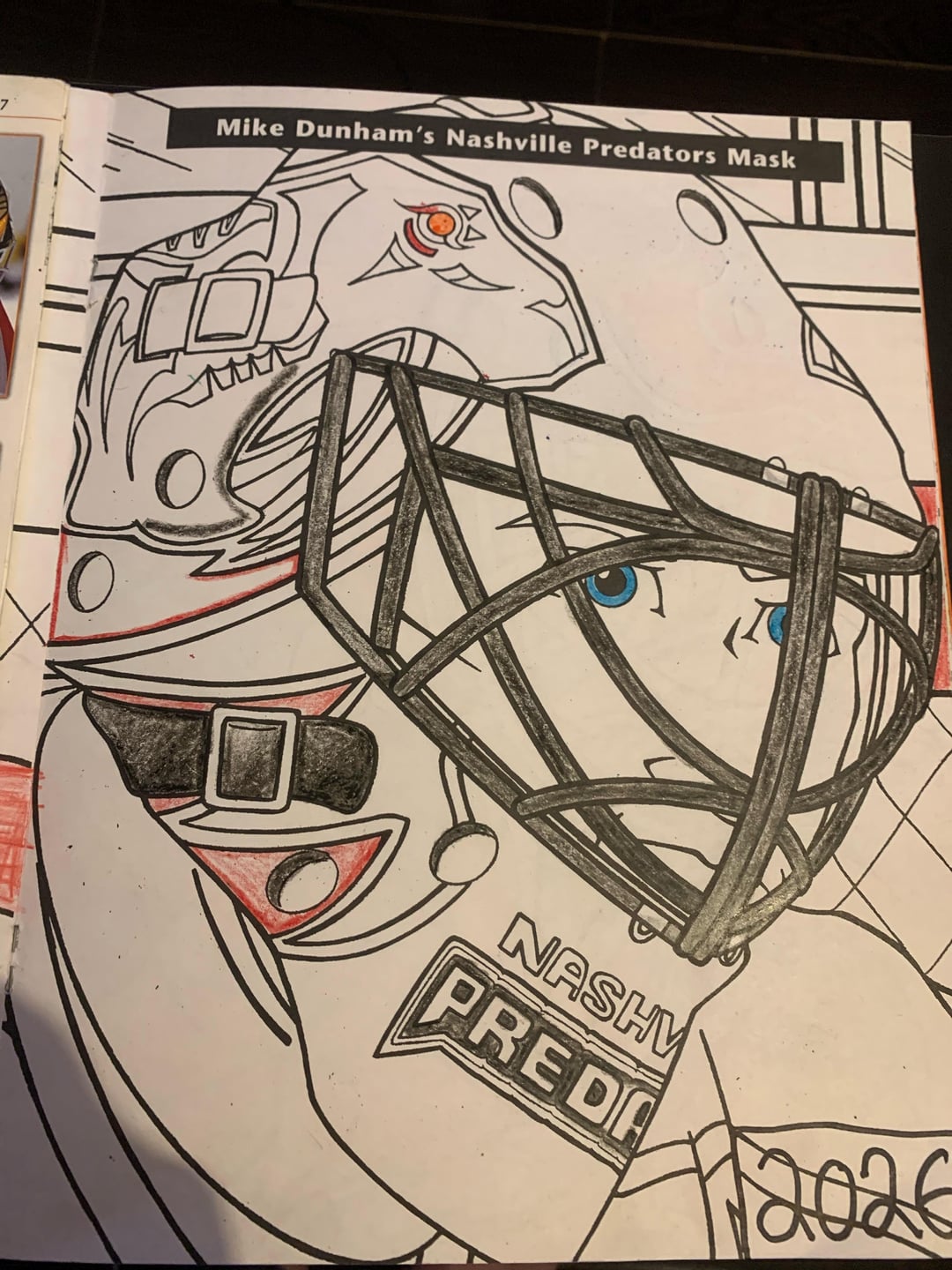 J’ai pris un jeu de crayons ce soir et je travaille sur (ma version) du masque Predators de Mike Dunham et je suis devenu curieux… quelqu’un d’autre a déjà eu ça ou quelque chose de similaire ?