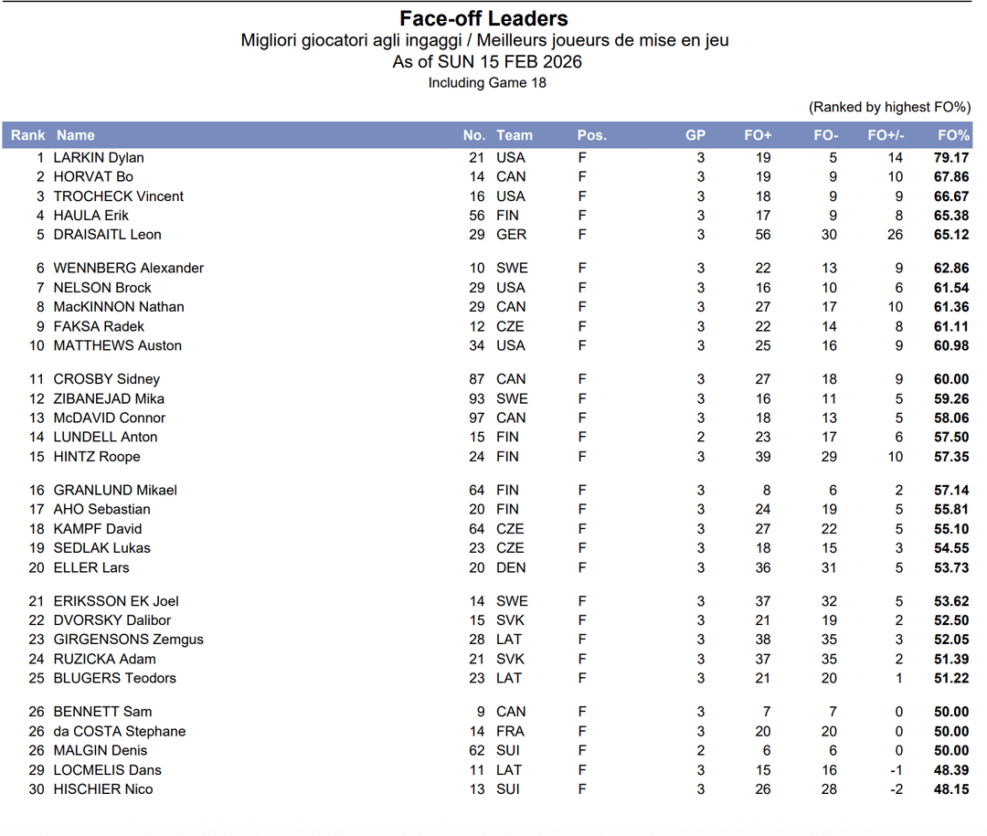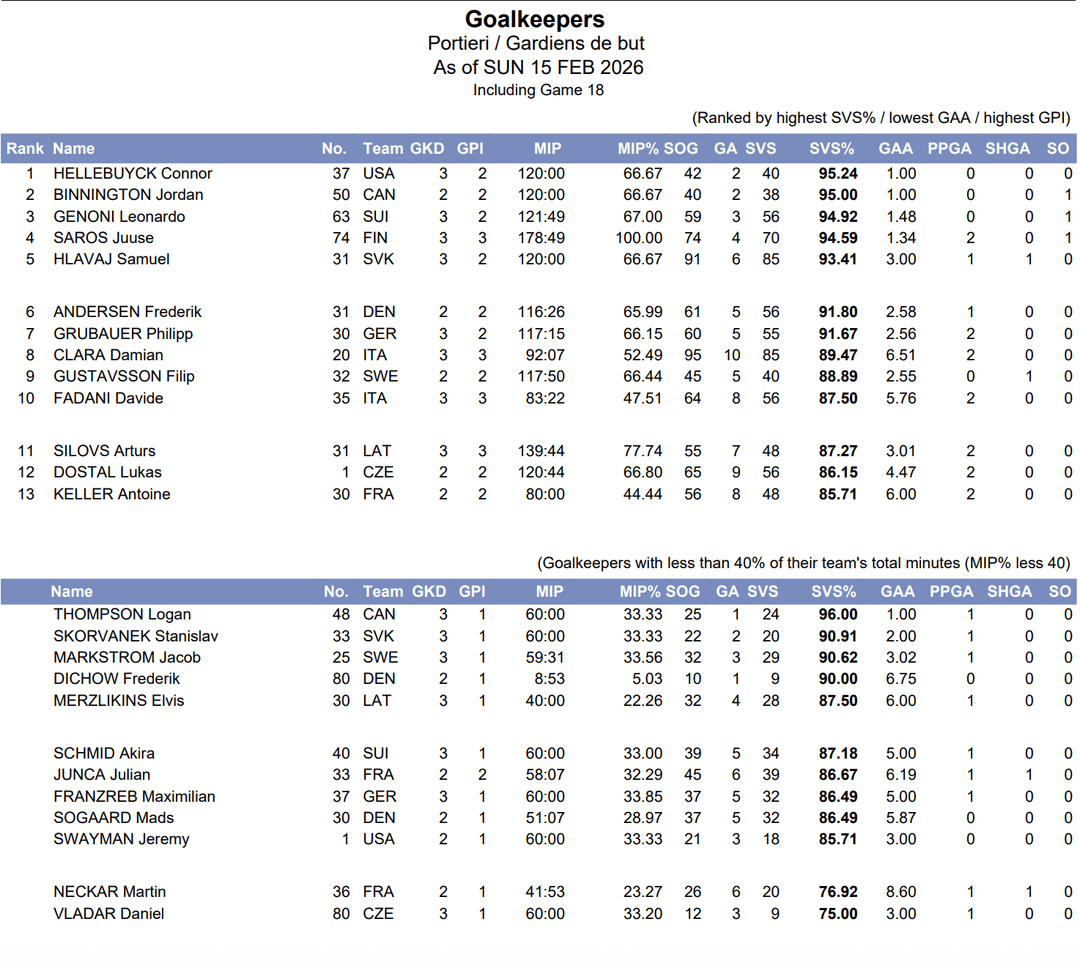 Juice a terminé la ronde préliminaire avec un SV% de 0,946 et a été le seul gardien de but à disputer les 3 matchs d’une équipe. Haula avait le 4ème meilleur FO%.