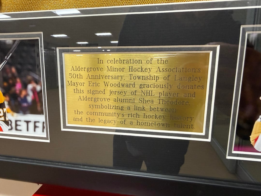 Je me suis arrêté au centre communautaire d’Aldergrove pour un White Spot tard dans la nuit et je n’ai pas pu m’empêcher de remarquer ce joli maillot Shea Theodore. Je ne savais pas qu’il venait d’Aldergrove. Vraiment excité de le voir jouer pour l’équipe canadienne en ce moment.