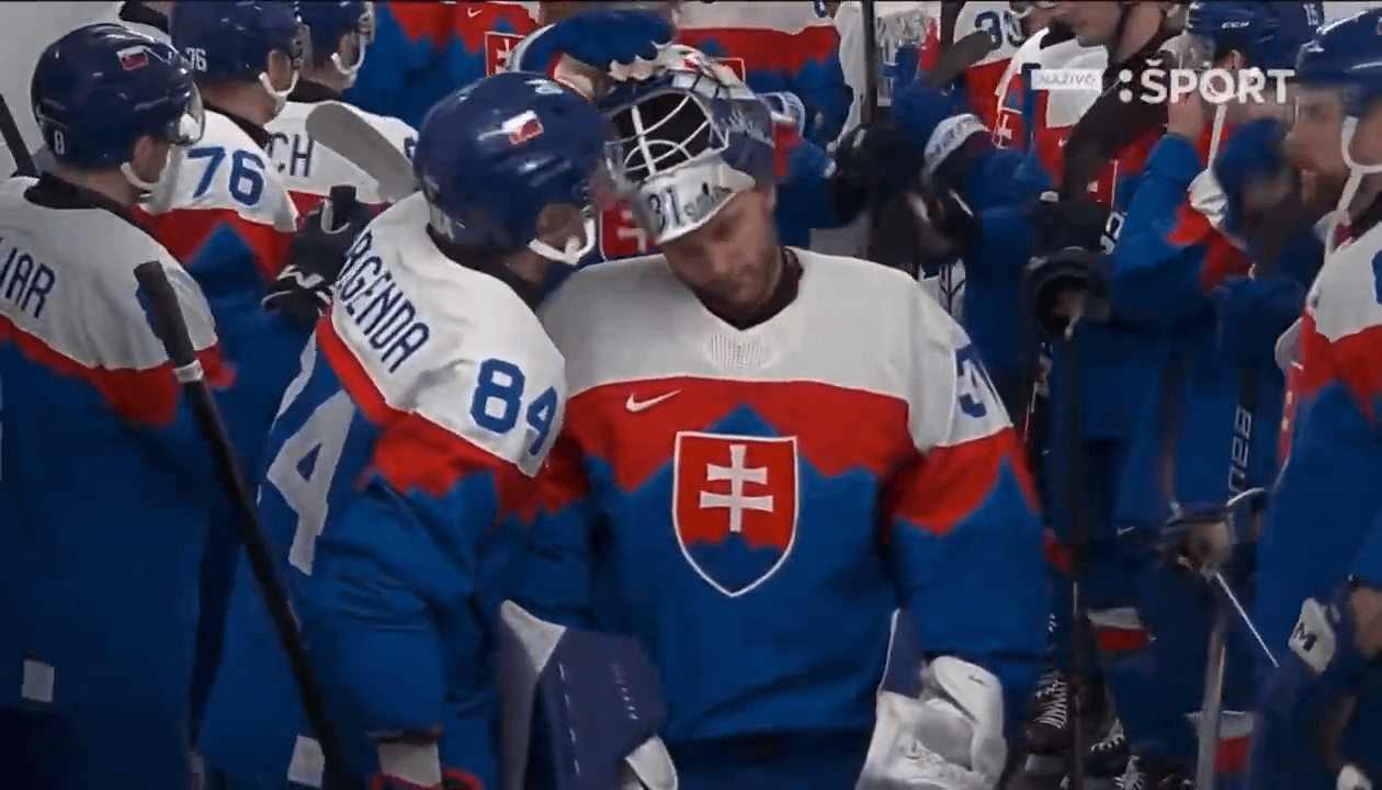 Pavol Regenda donne un baiser au casque à Samuel Hlavaj avant le match