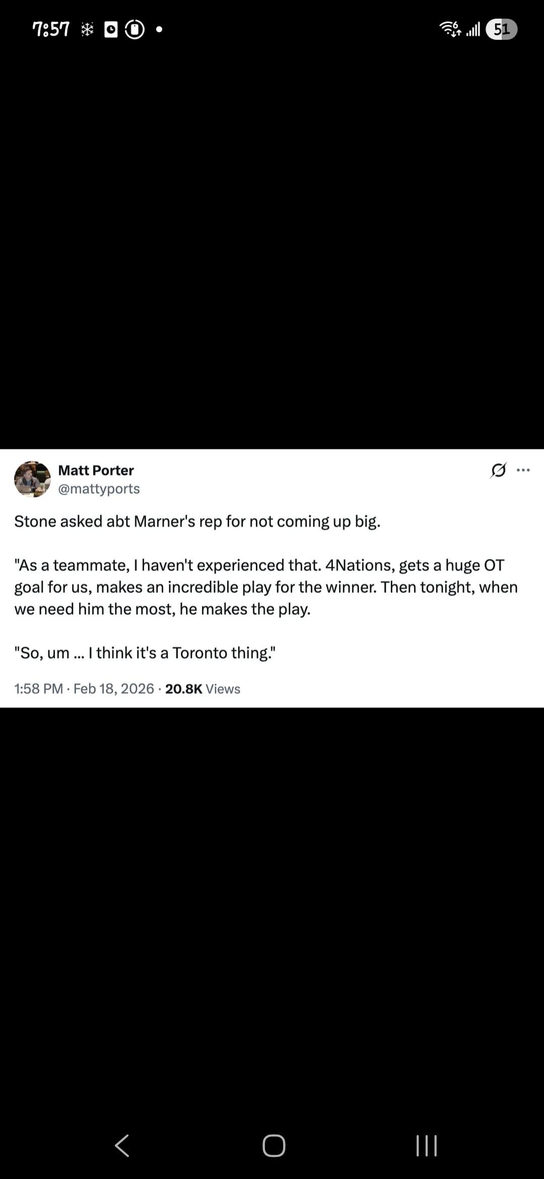 Stones a bit of a clown but he’s not wrong. Marner never came up big when in Toronto, that’s a fact. He’s had a couple nice moments on a stacked Canada team which is nice to see as a Canadian.